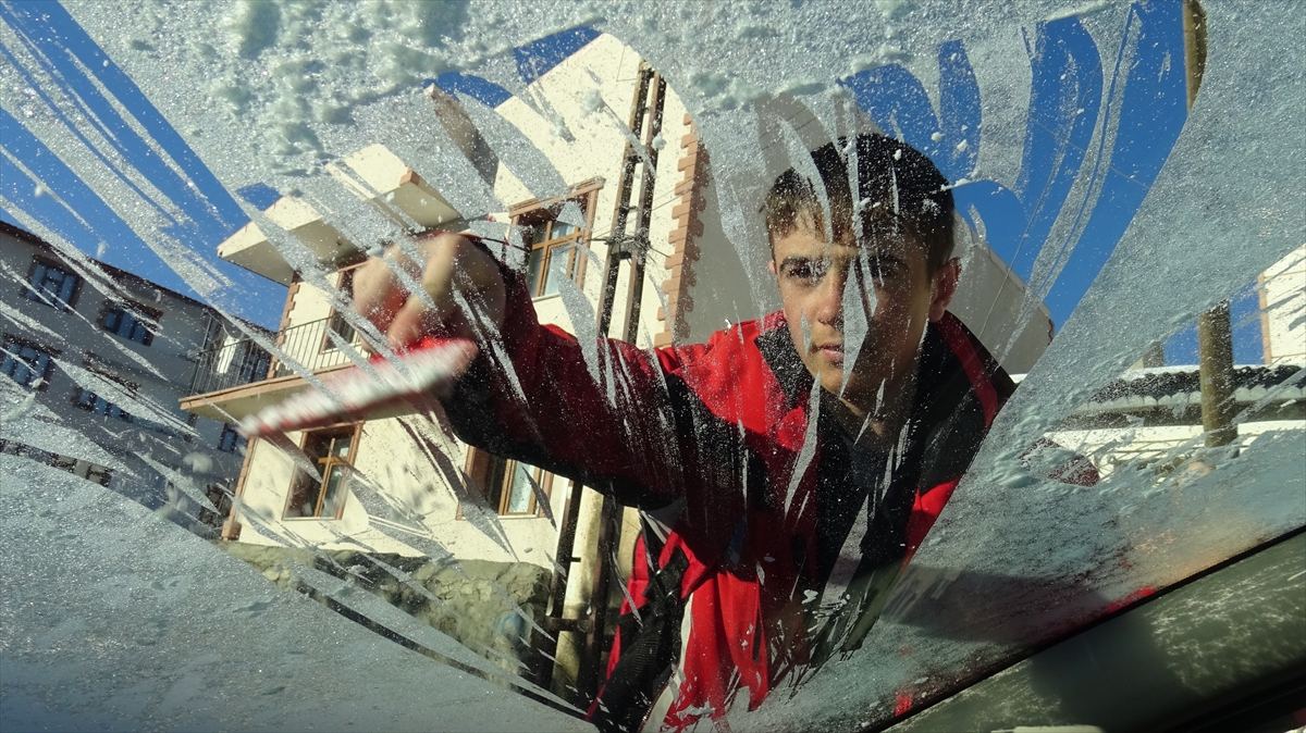 Gece hava sıcaklığının sıfırın altında 9 dereceye düştüğü ilçede, araçların camları buz tuttu, bina çatılarında buz sarkıtları oluştu.