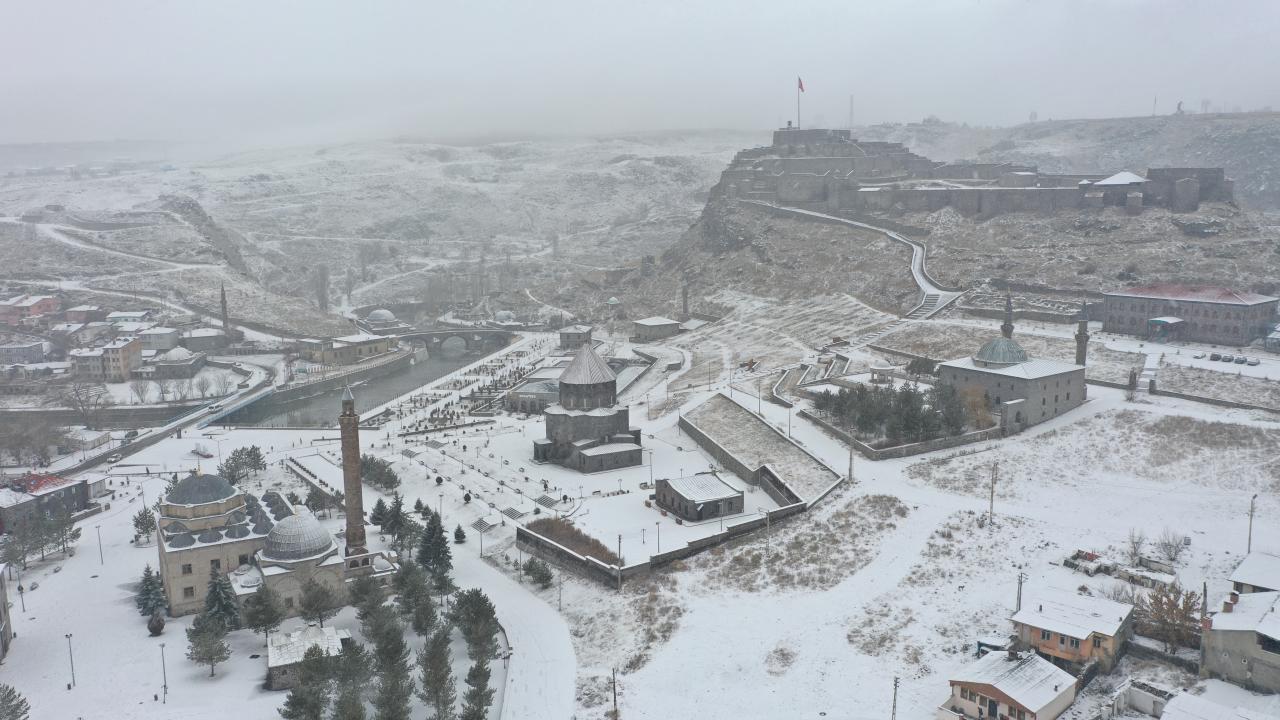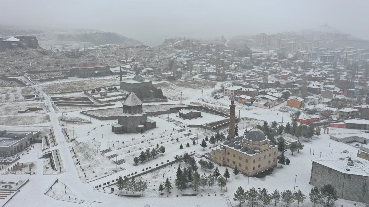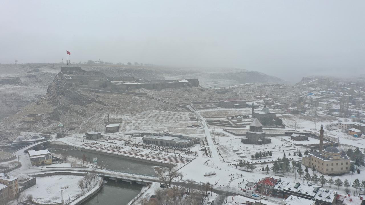 Kars'ta dün başlayan ve aralıklarla devam eden kar sabah saatlerinde etkisini artırdı. Beyaza bürünen tarihi Kars Kalesi ve çevresi görüntülendi.