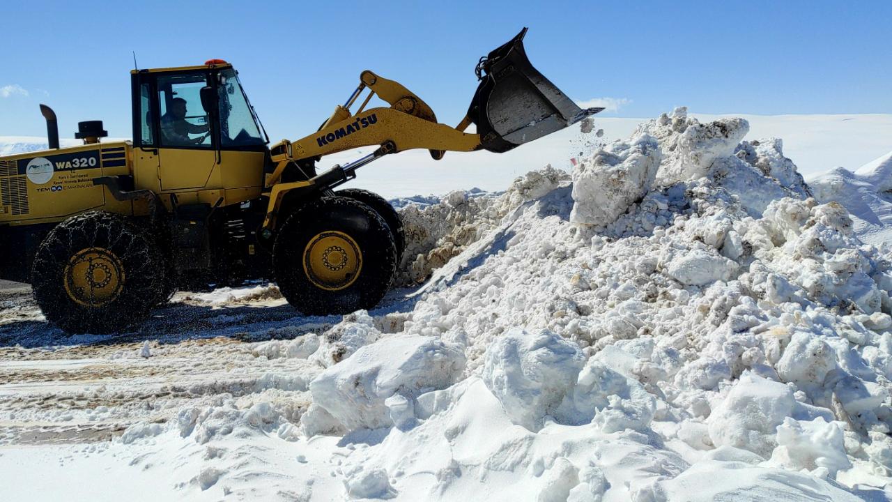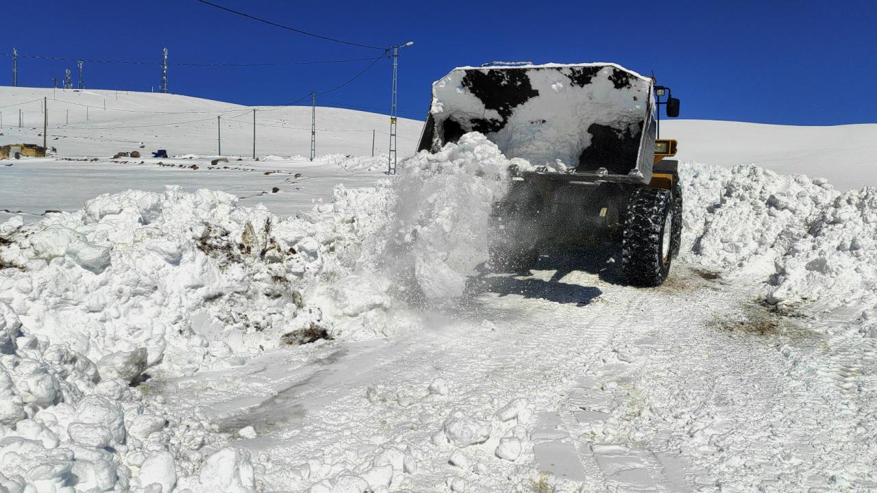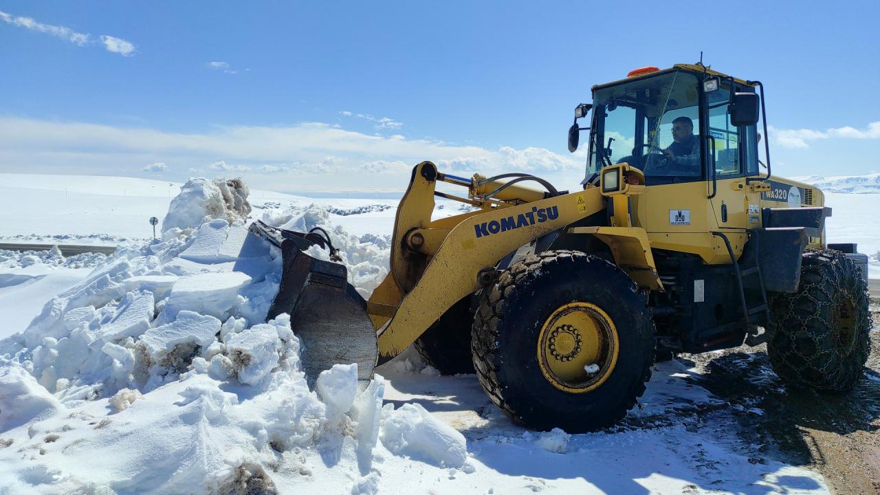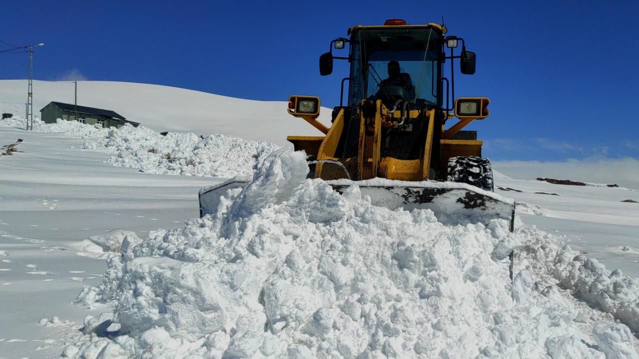 Zorlu coğrafyada görev alan ekipler, bu ayın son gelişmeleri etkili olan kar ve tipi nedeniyle ulaşıma kapanan bazı köy ve mezra yollarını açmak için greyder, kepçe ve rotatifle görev yapıyor.