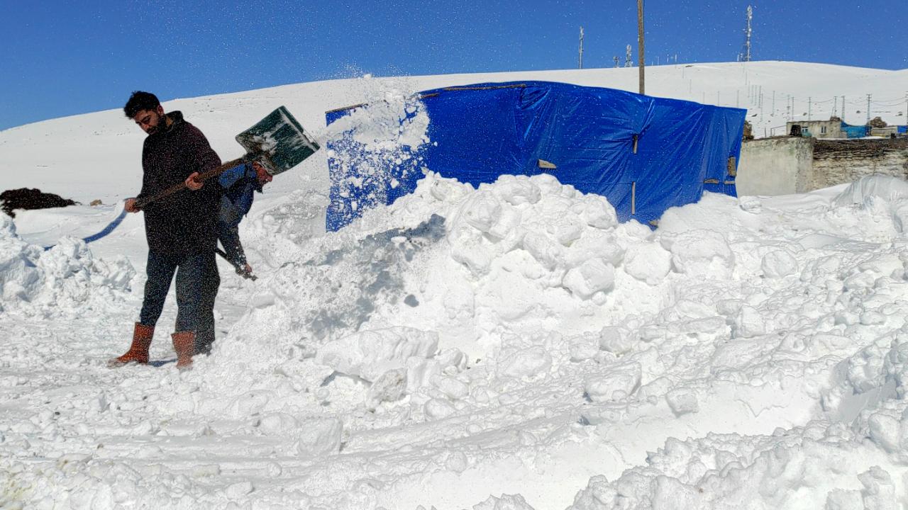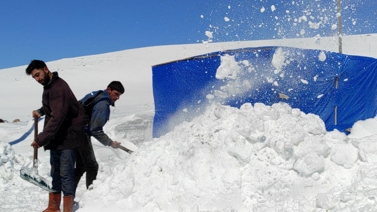 İş makinesinin ardından köylüler ise evlerinin önünde biriken karları küreklerle temizledi.