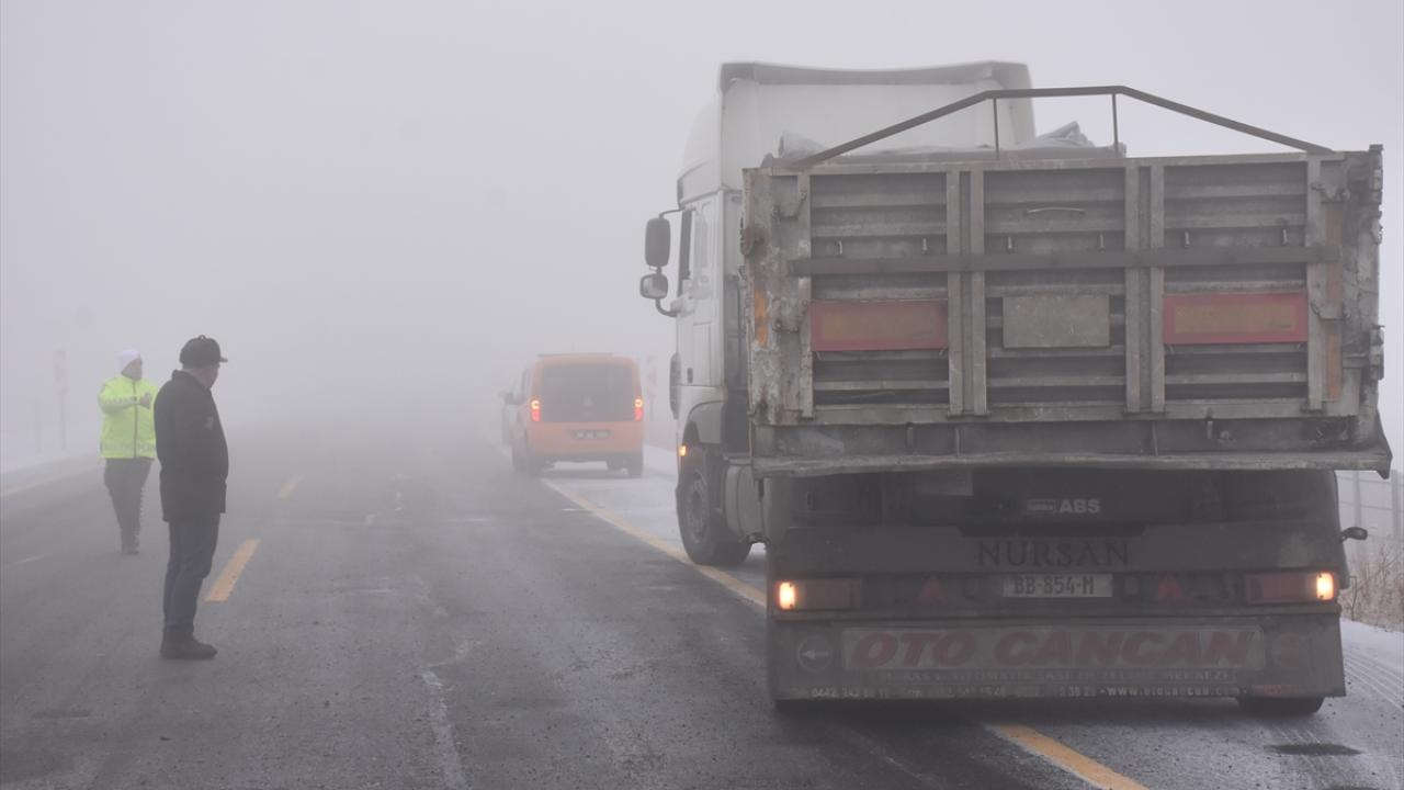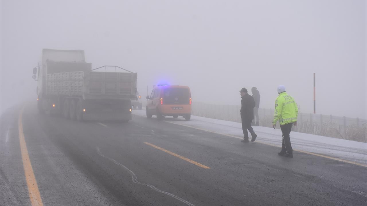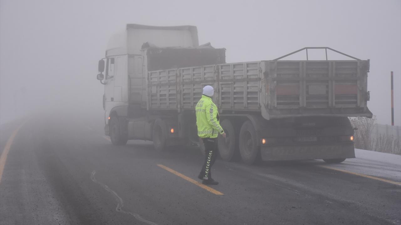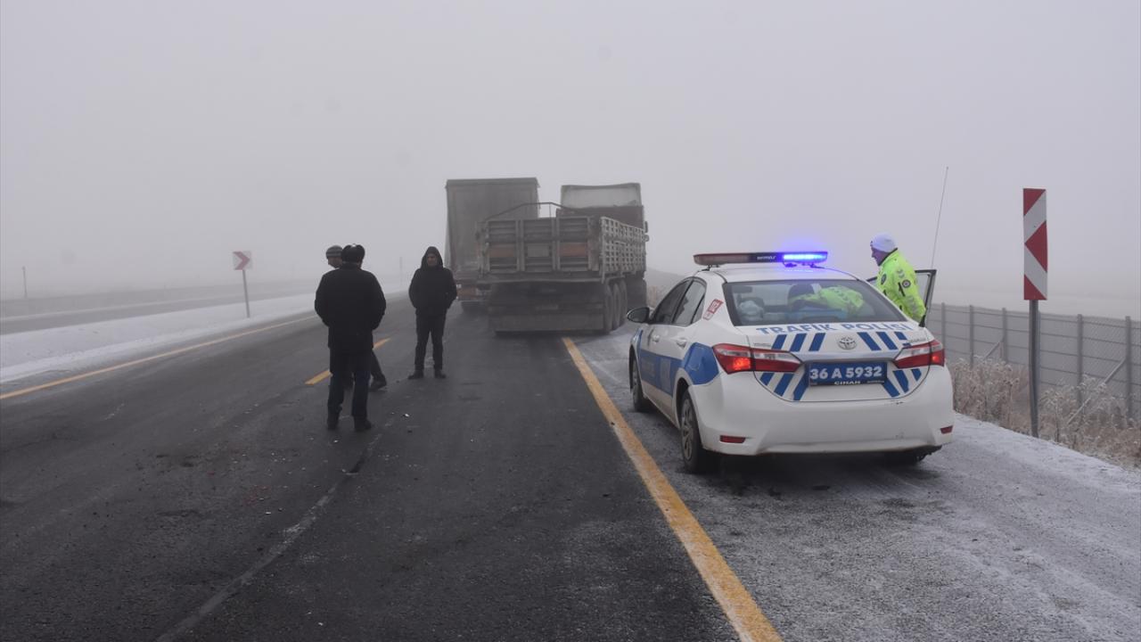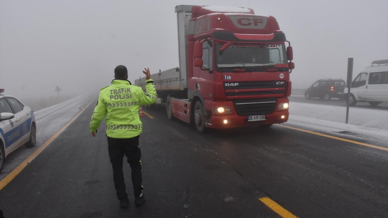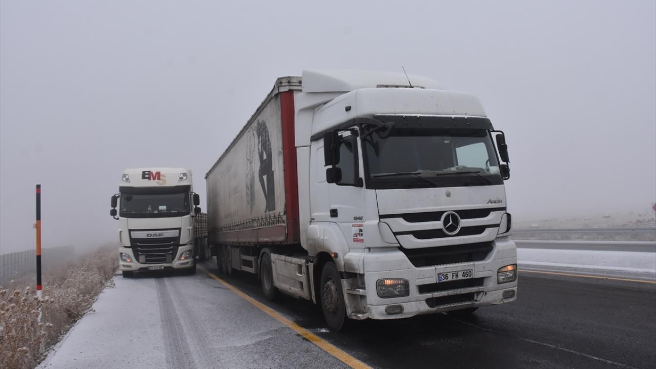 Kars-Iğdır kara yolunda buzlanma nedeniyle bazı tırlar Ölçülü köyü mevkisinde yolda kaldı.