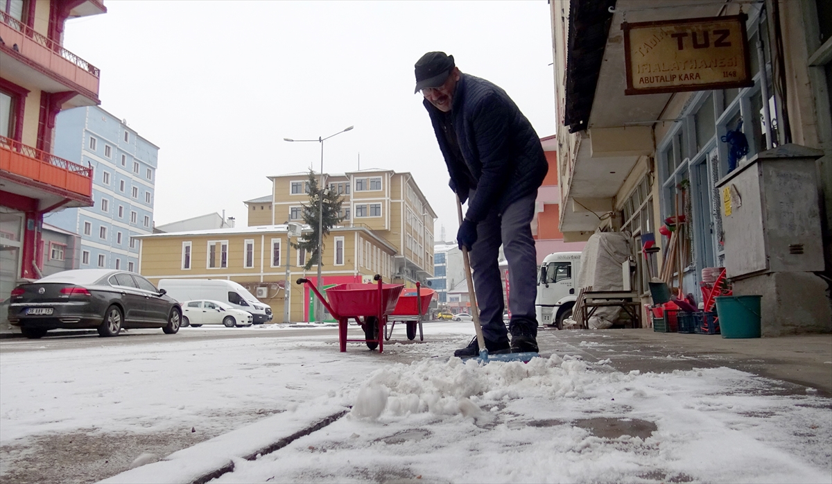 Yollar, caddeler ile araçların karla kaplandığı kentte, soğuk hava da etkili oldu.