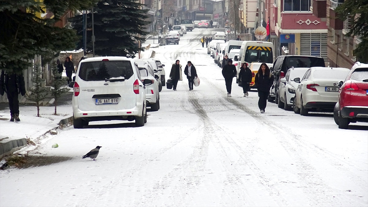 Kars'ta gece etkili olan sağanak, sabah saatlerinde yerini kara bıraktı.