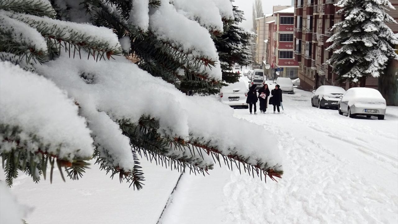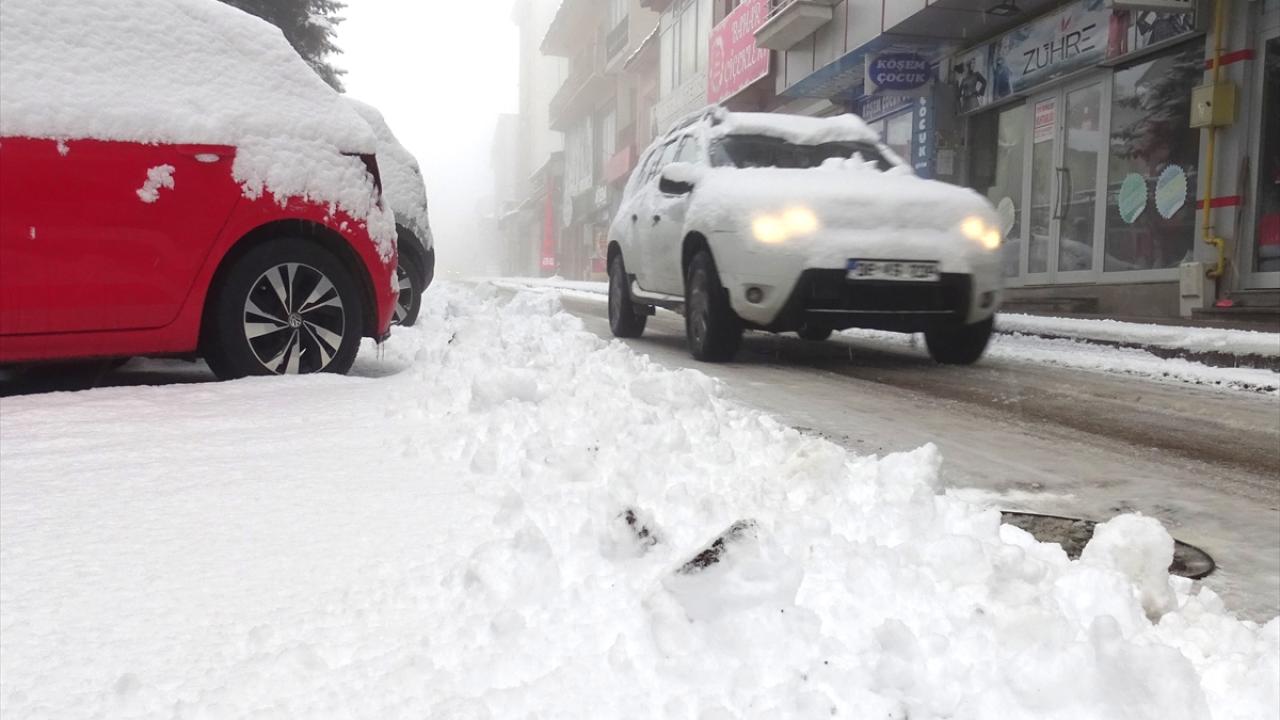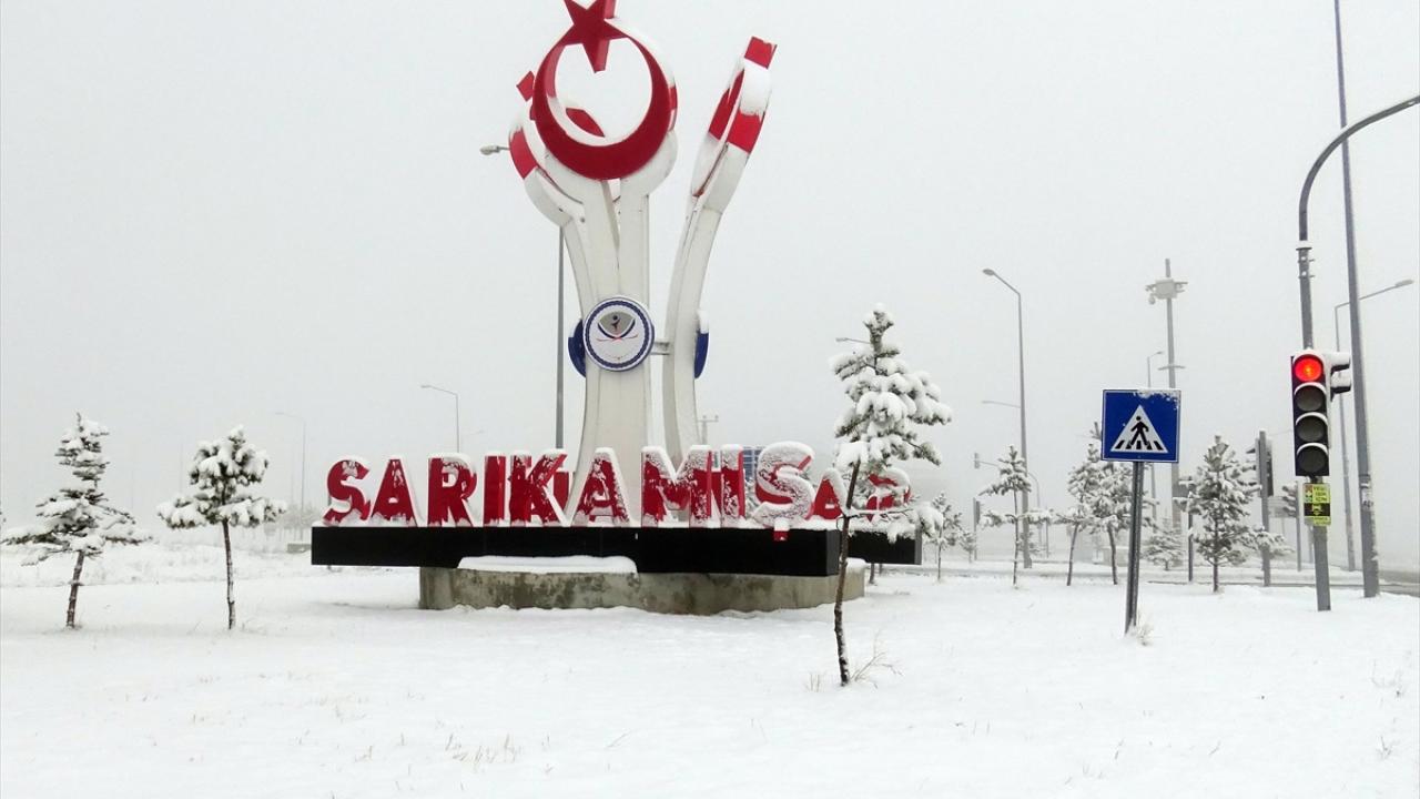 Kars'ın Sarıkamış ilçesinde kar yağışı etkili oldu.