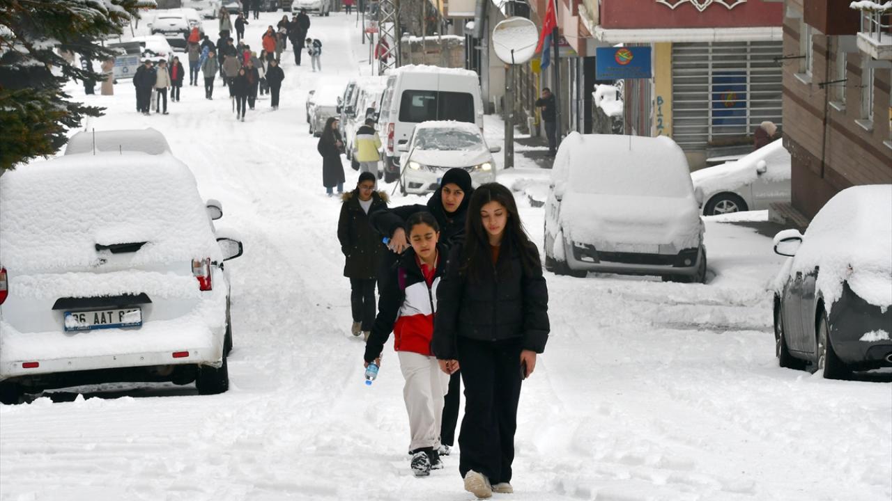 Sarıkamış ilçesinde de lapa lapa kar yağdı.