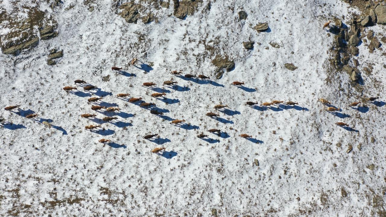 Çoban Hayati Bayşu, kasım ayının 15`ine kadar hayvanları dışarıda otlattıklarını belirterek, "Bu kar kalkar, her sene böyle yağar. Kar yağdığı için hayvanları ahırdan geç çıkartıyoruz, erken getiriyoruz." dedi.