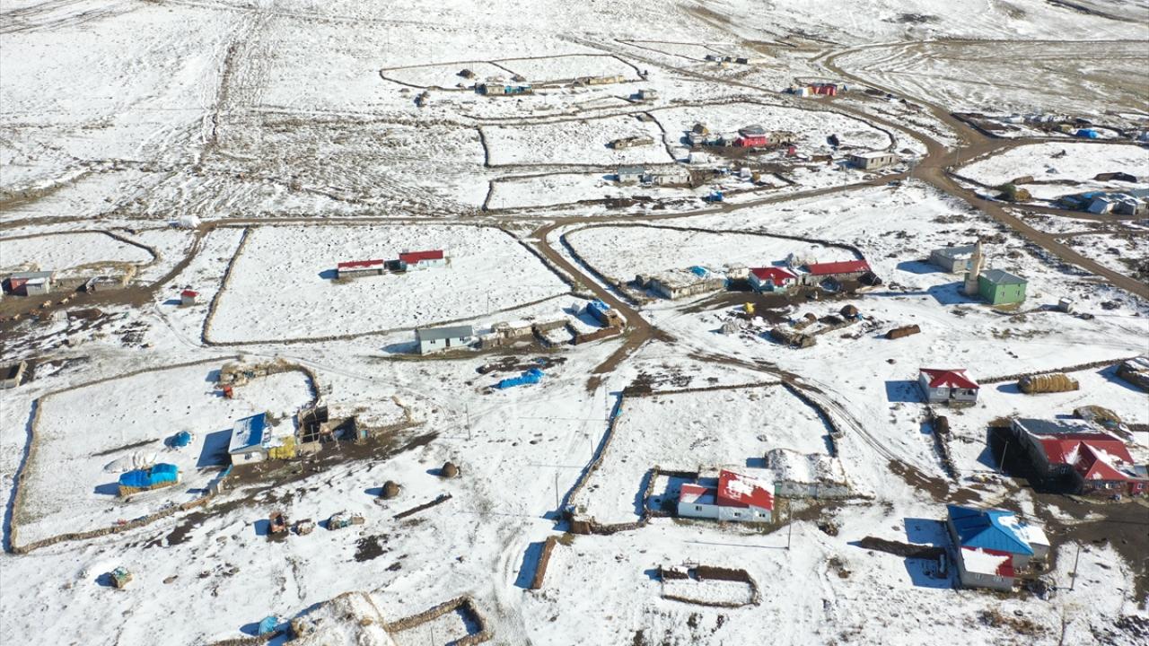 Kars-Göle kara yolunda 2 bin 300 rakımdaki köyler karla kaplandı. Besiciler hayvanlarını otlatmak için karın olmadığı bölgelere indiriyor.