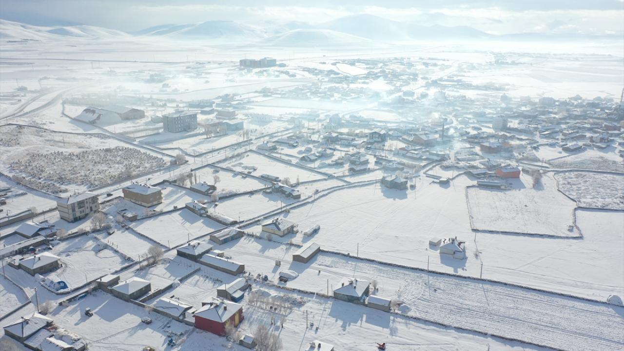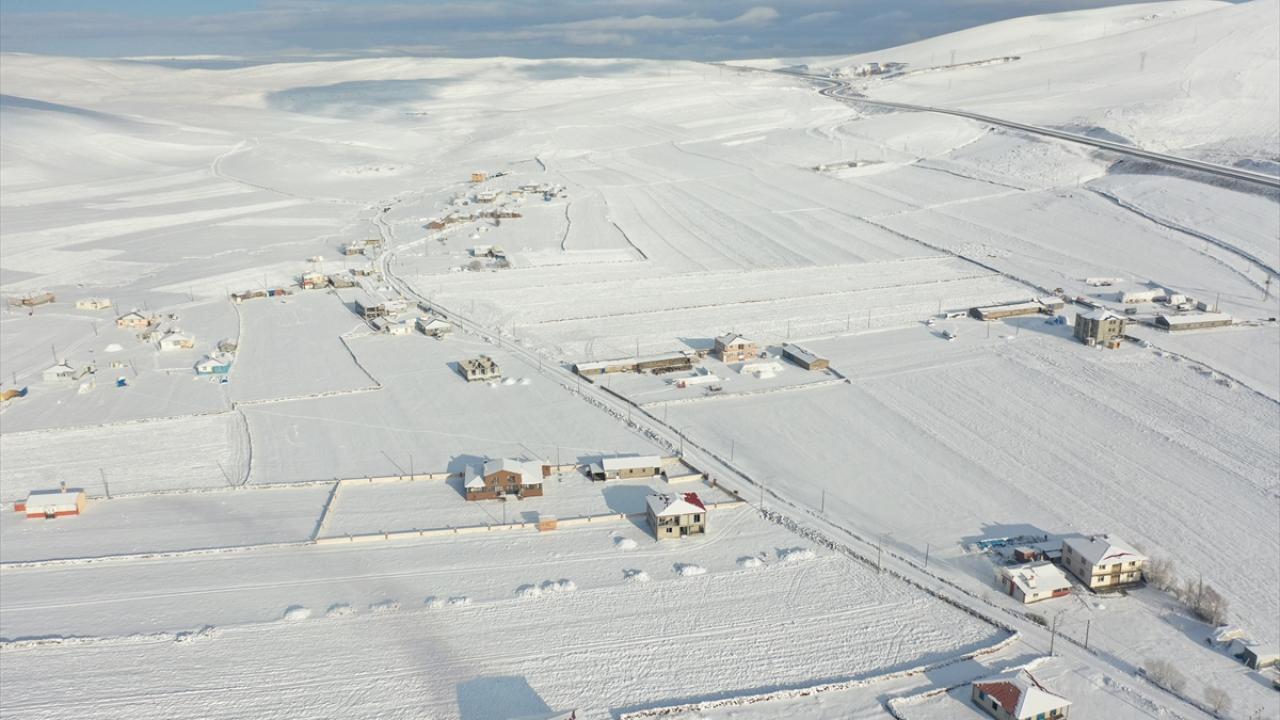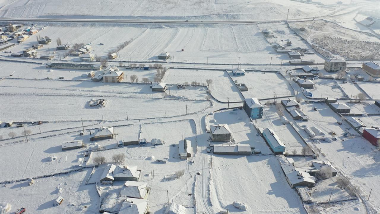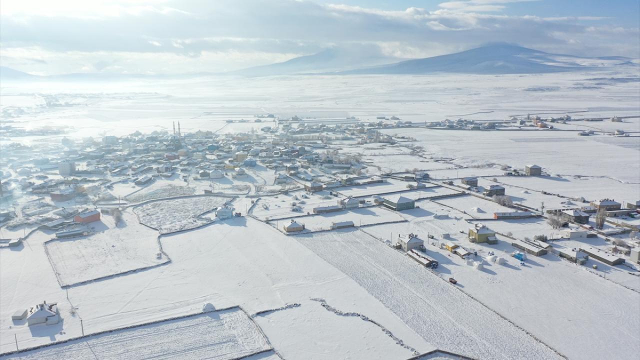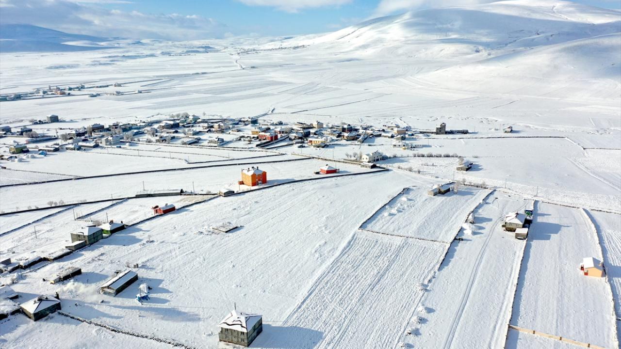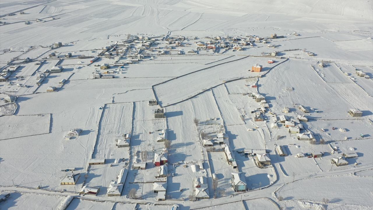 Kars'ta karla kaplanan köyler dronla görüntülendi
