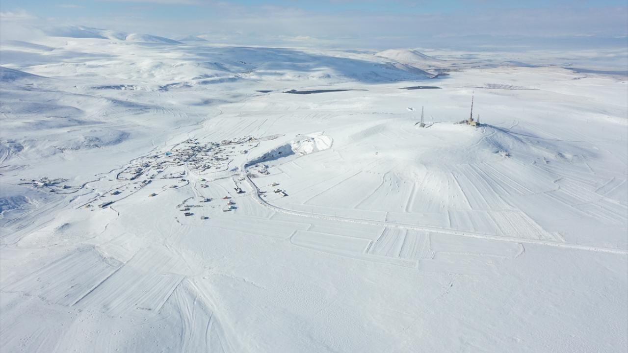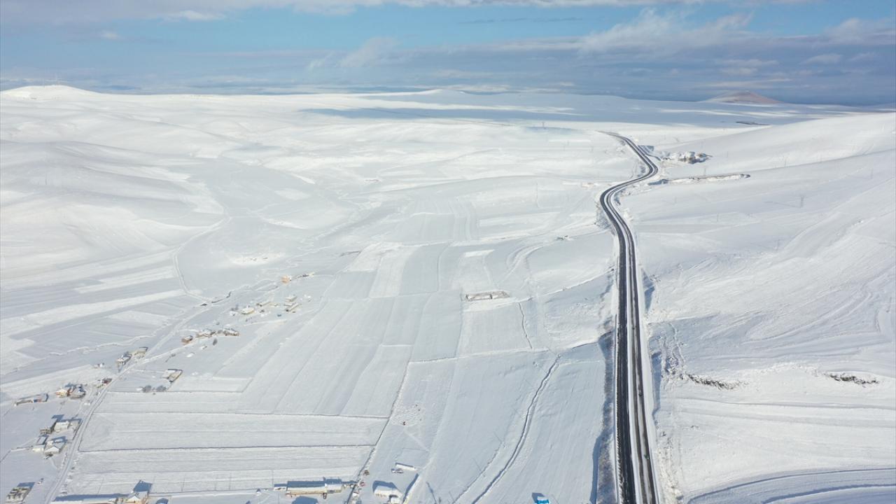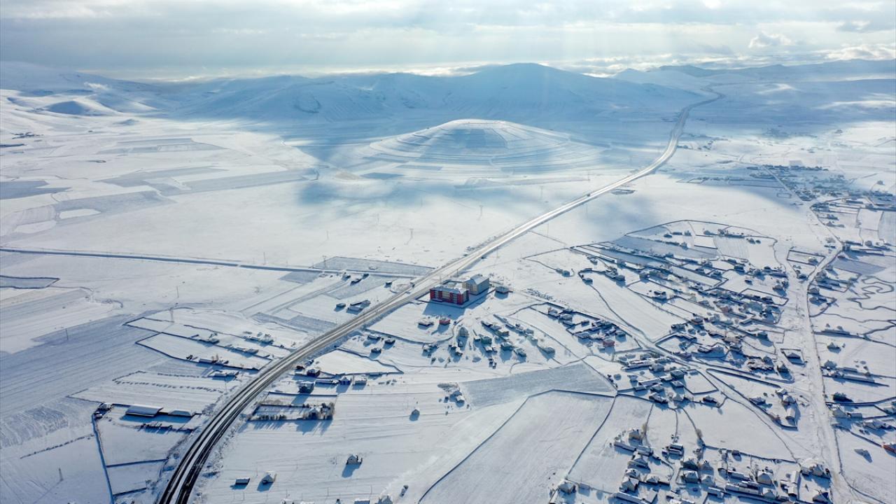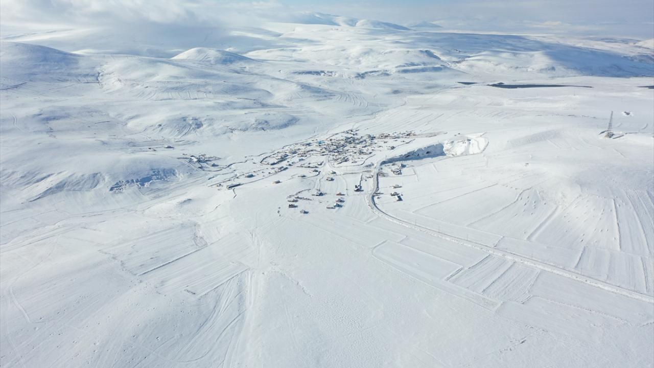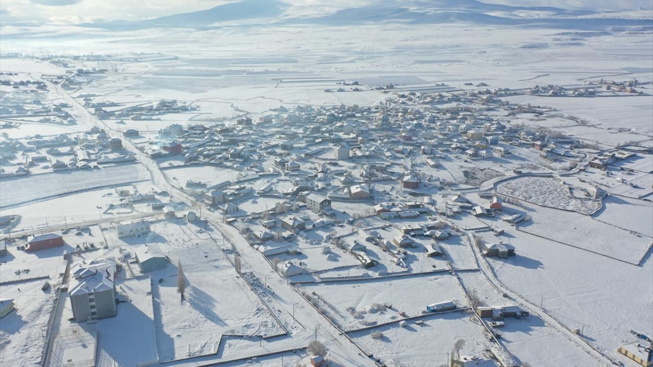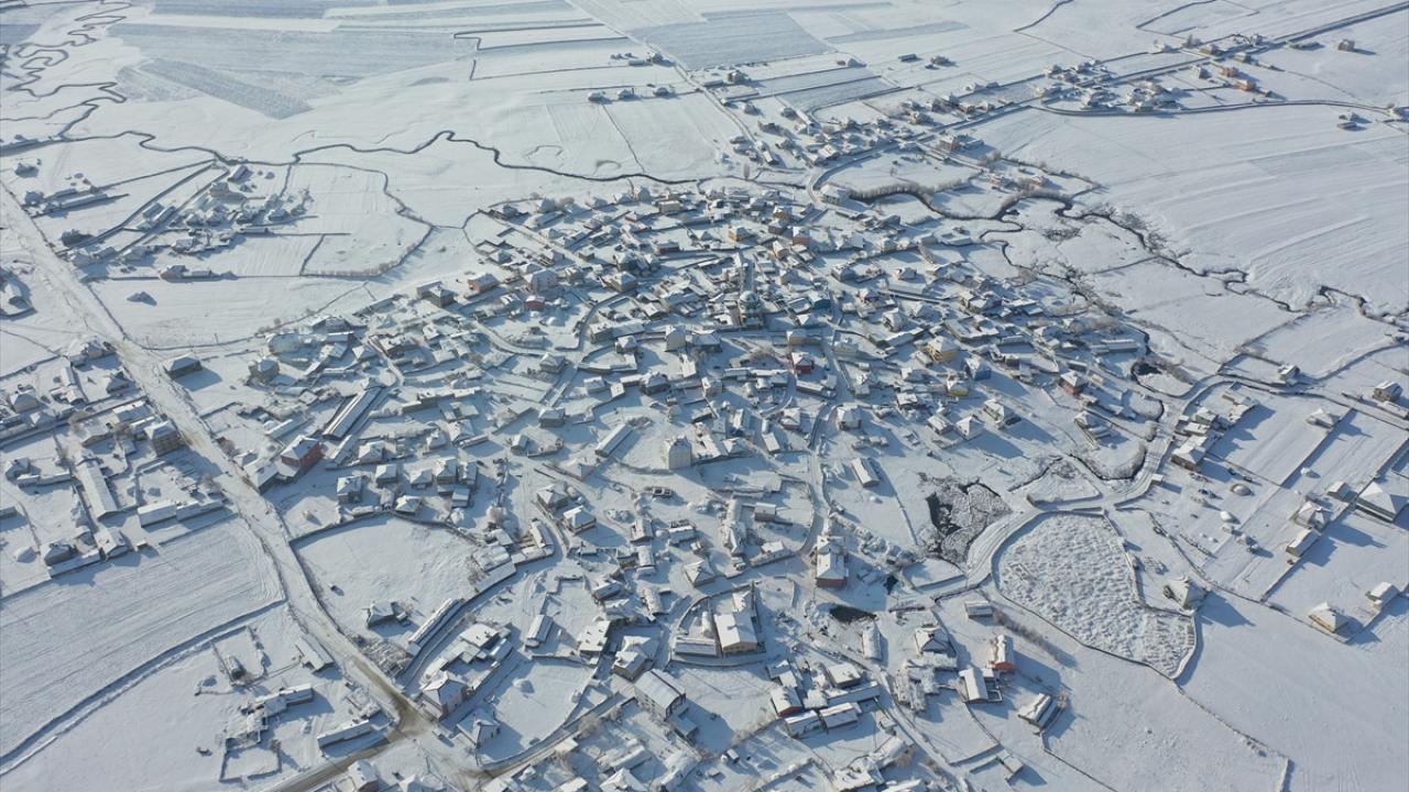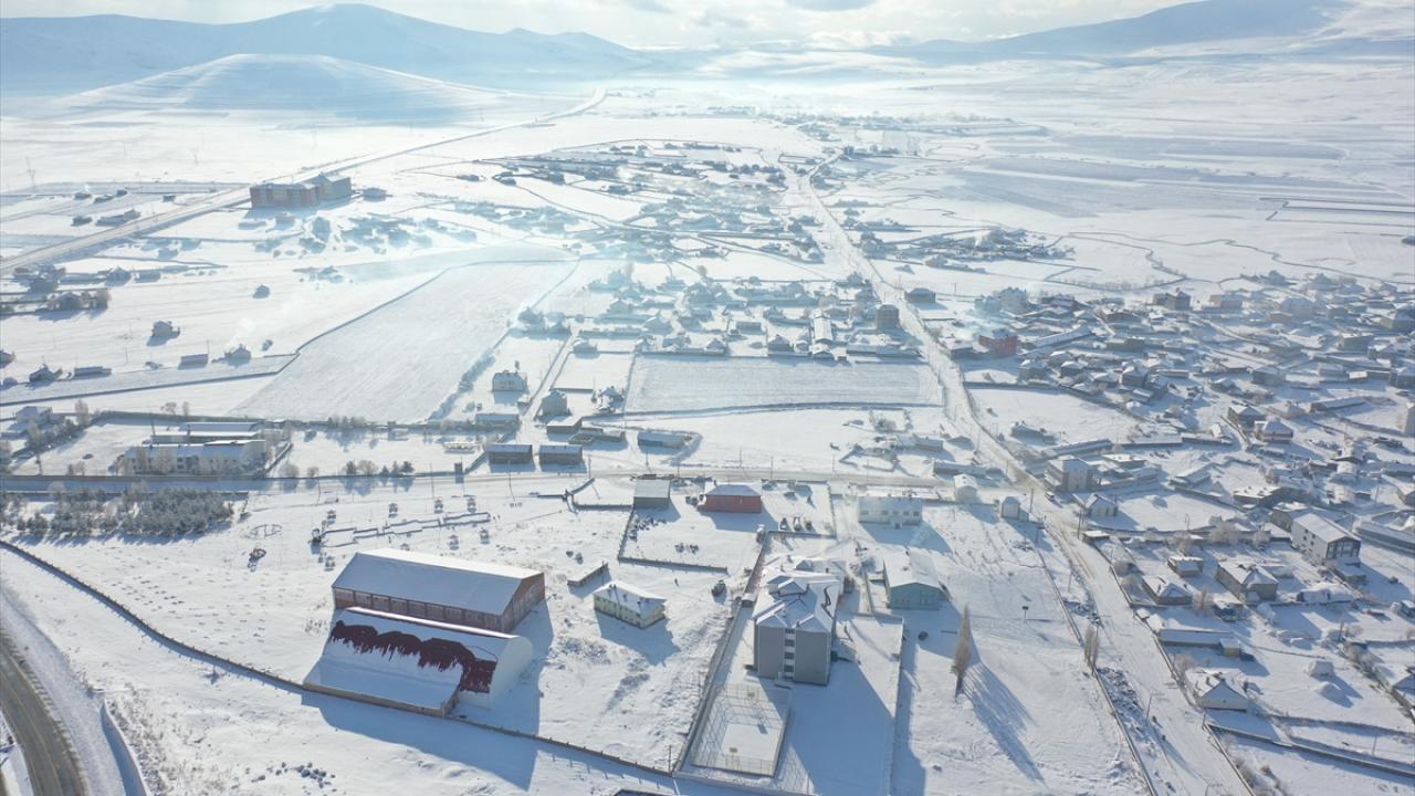 Kars'ta karla kaplanan köyler dronla görüntülendi