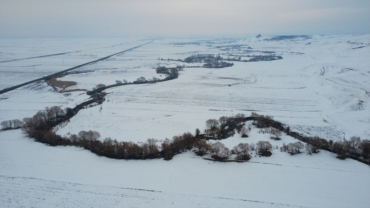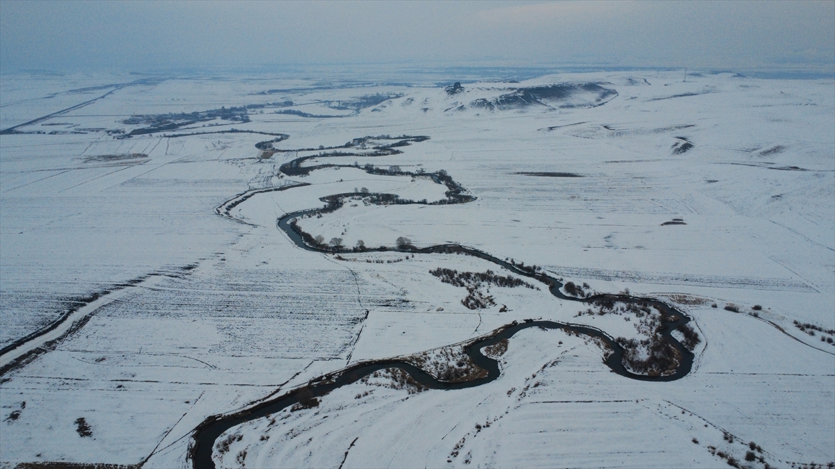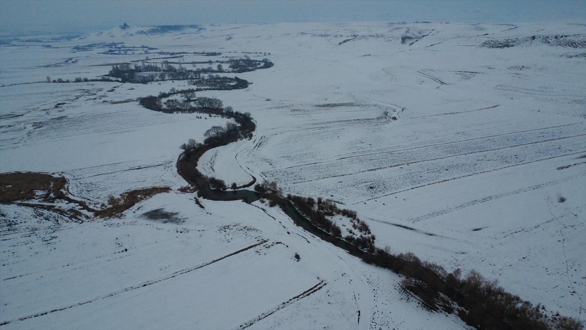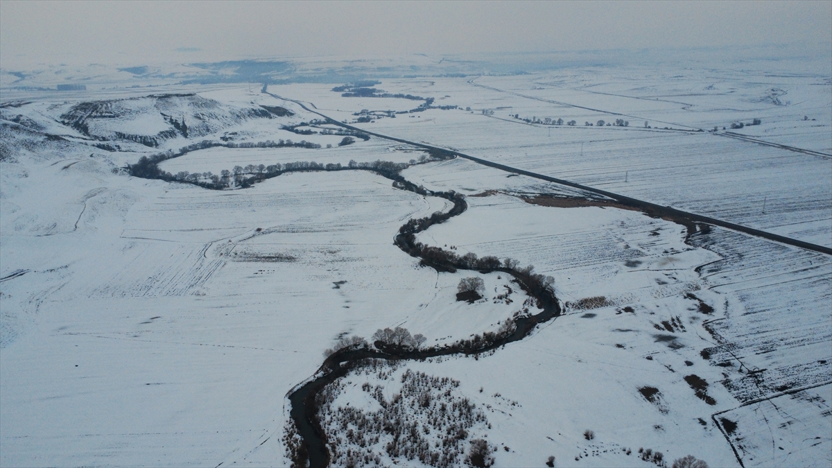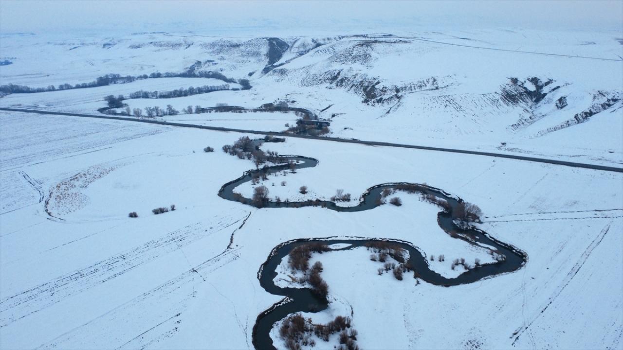 Yazın tarım ile hayvancılığa can suyu olan menderesler, kışın da karla kaplı haliyle güzel manzaralar oluşturdu.