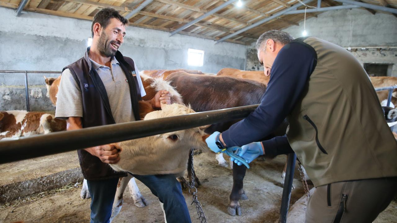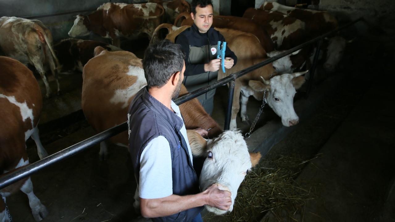 Ekipler, 450 nüfuslu ve 750 büyükbaş varlığı olan merkeze bağlı Çağlayan köyüne gelerek küpesi olmayan hayvanları kayıt altına aldı. Köyde ahırları tek tek gezen Tarım ve Orman İl Müdürlüğü ekipleri, hem hayvanları kontrol etti hem de şap aşısı yaptı.