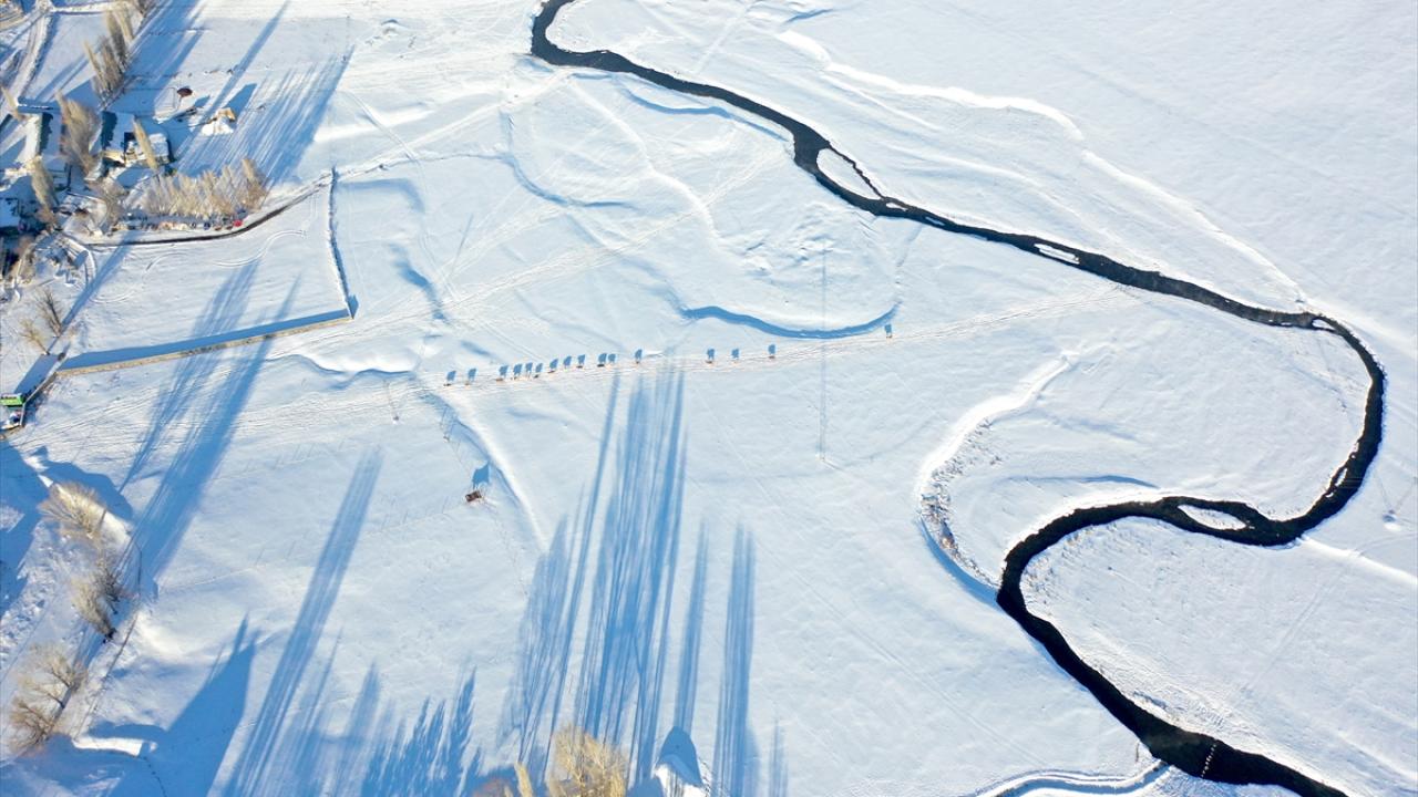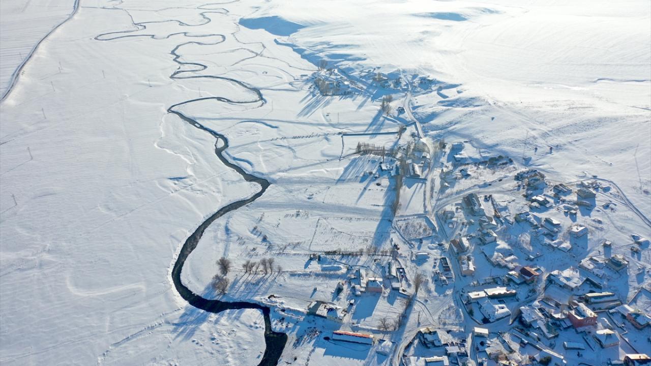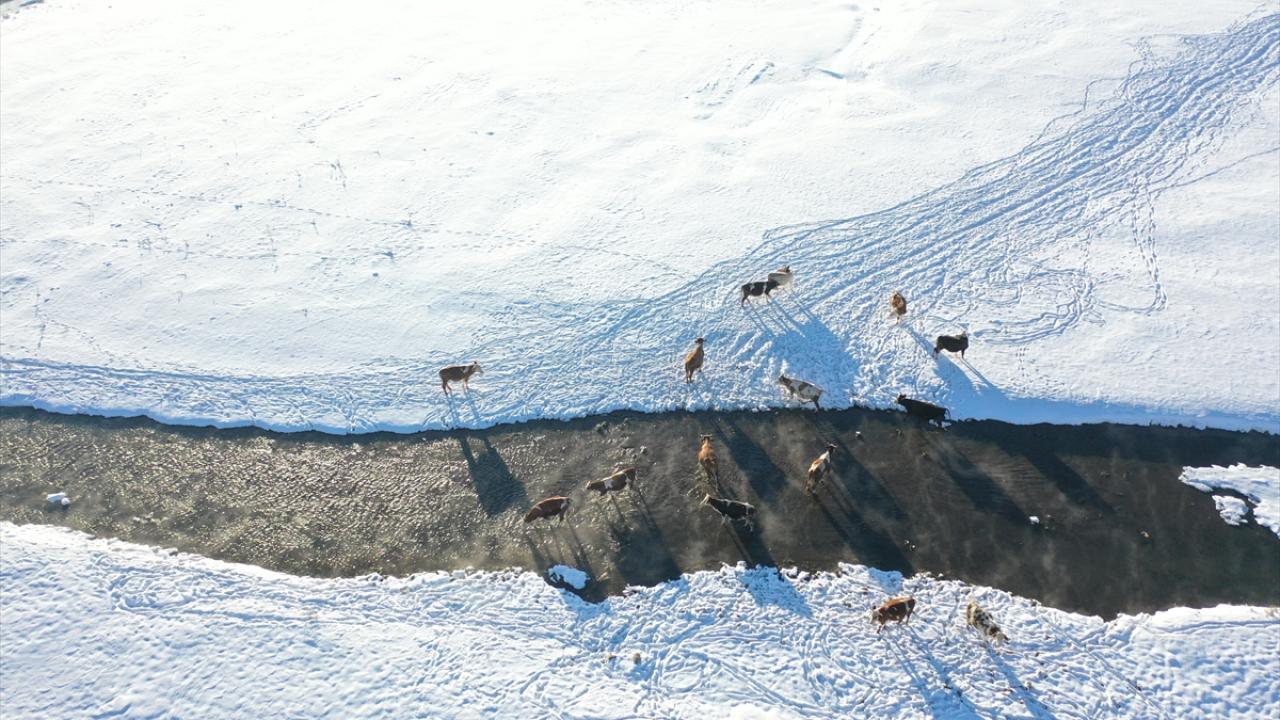 Kars'ın Selim ilçesinde köylerden geçen menderesler, kış aylarında hayvancılığa katkı sağlıyor.