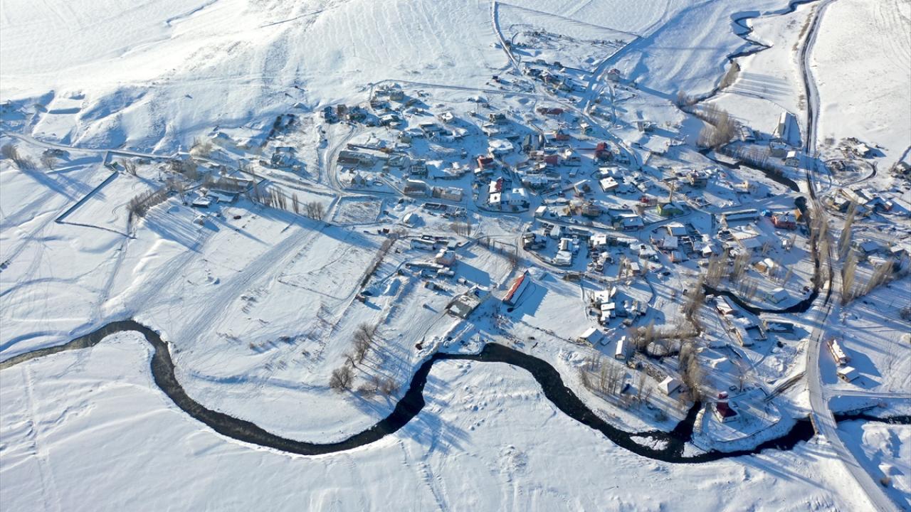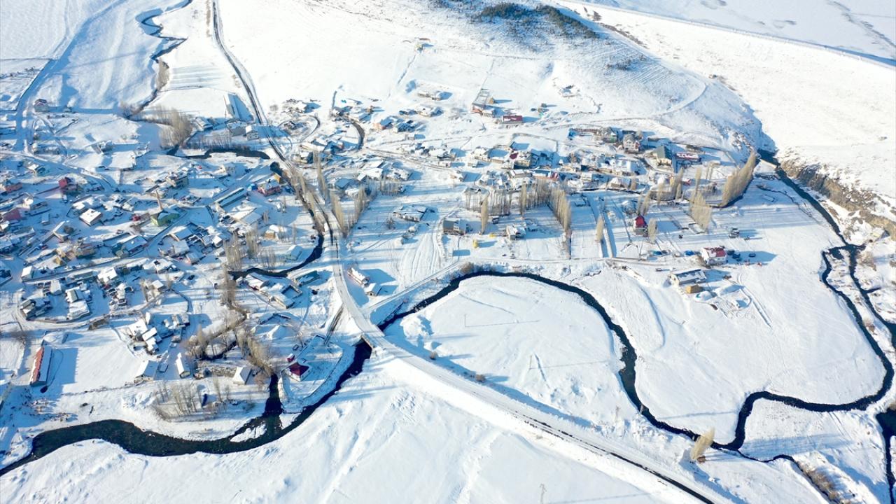Yöre halkının yaz aylarında tarlasını suladığı, kazlarını yüzdürdüğü ve etrafında hayvanlarını otlattığı mendereslerin çevresi, karla beyaza büründü.