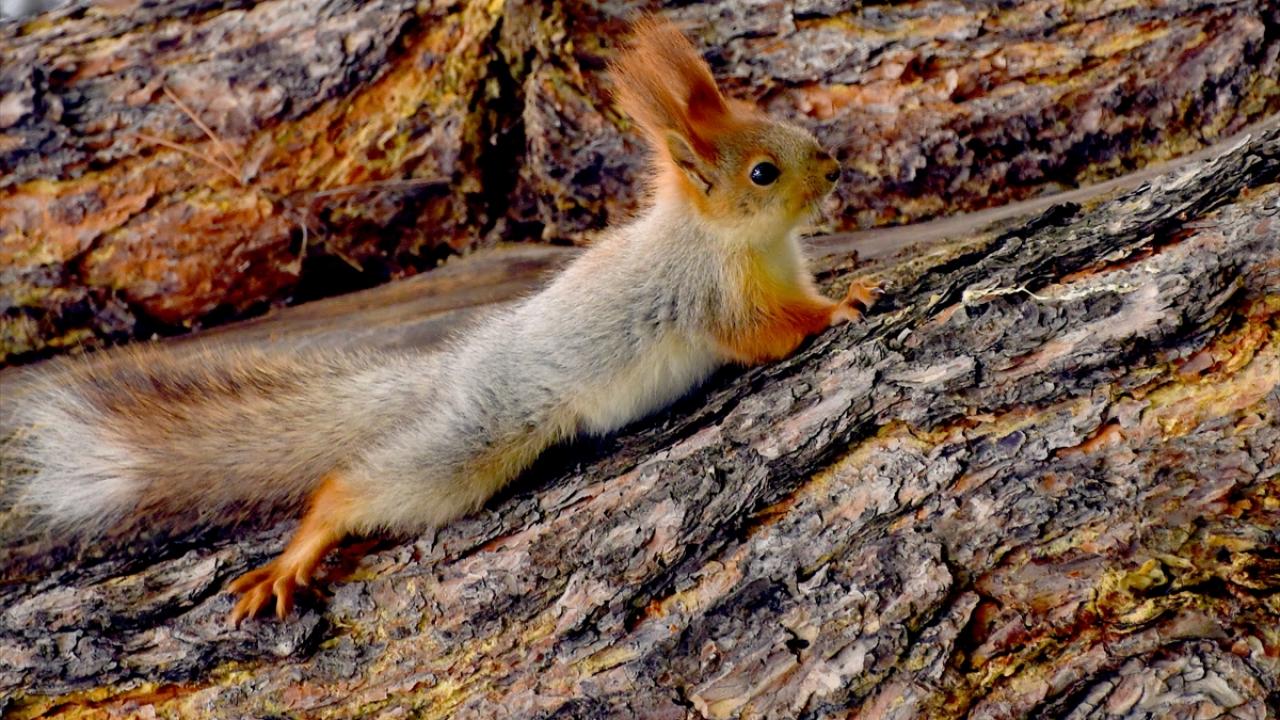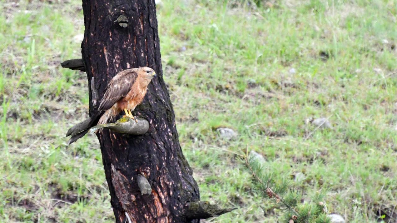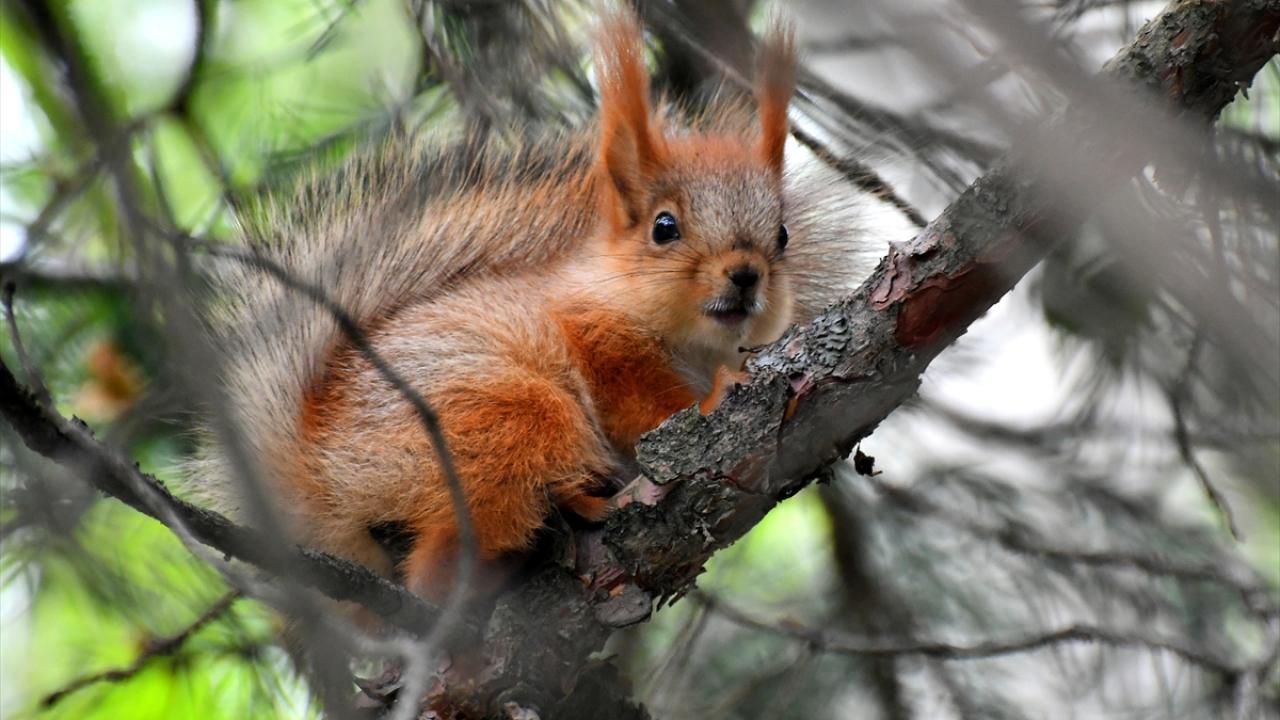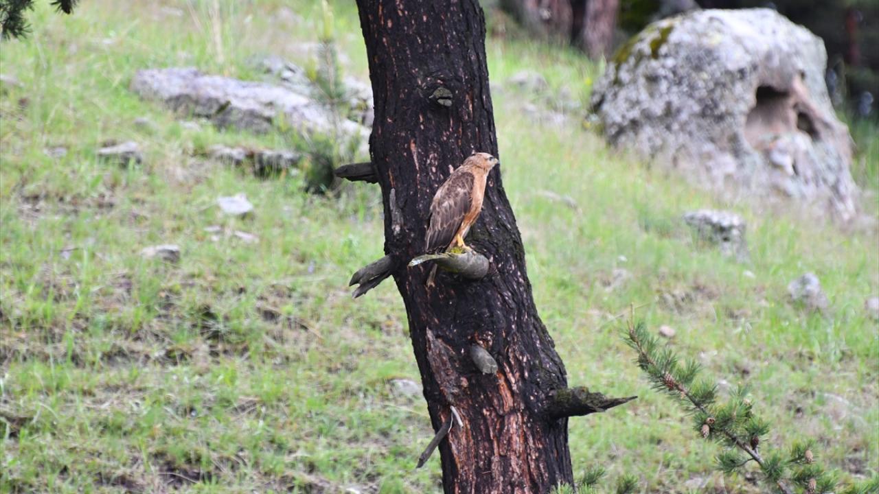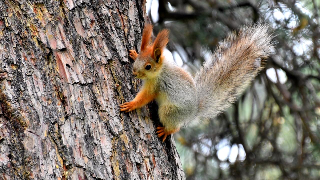 Ağaç dallarında gezinen ve kozalak kemiren sincaplar ile avlarını izleyen kızıl şahinler objektife yansıdı.