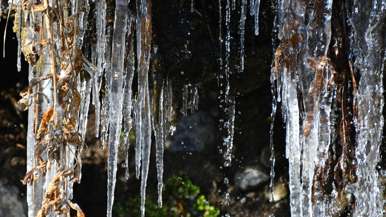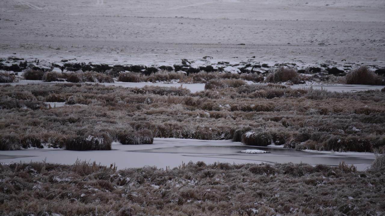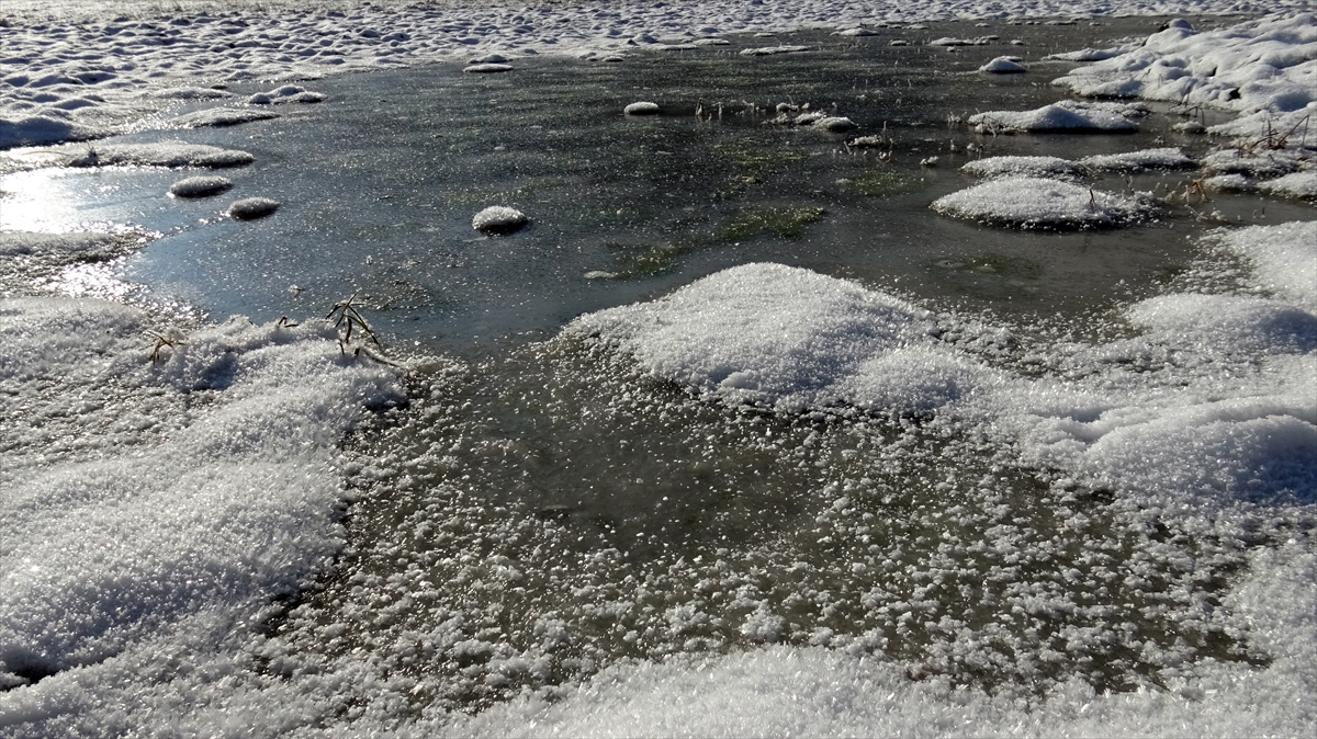 Soğuk hava nedeniyle bazı göletlerin bir kısmı buz tuttu.