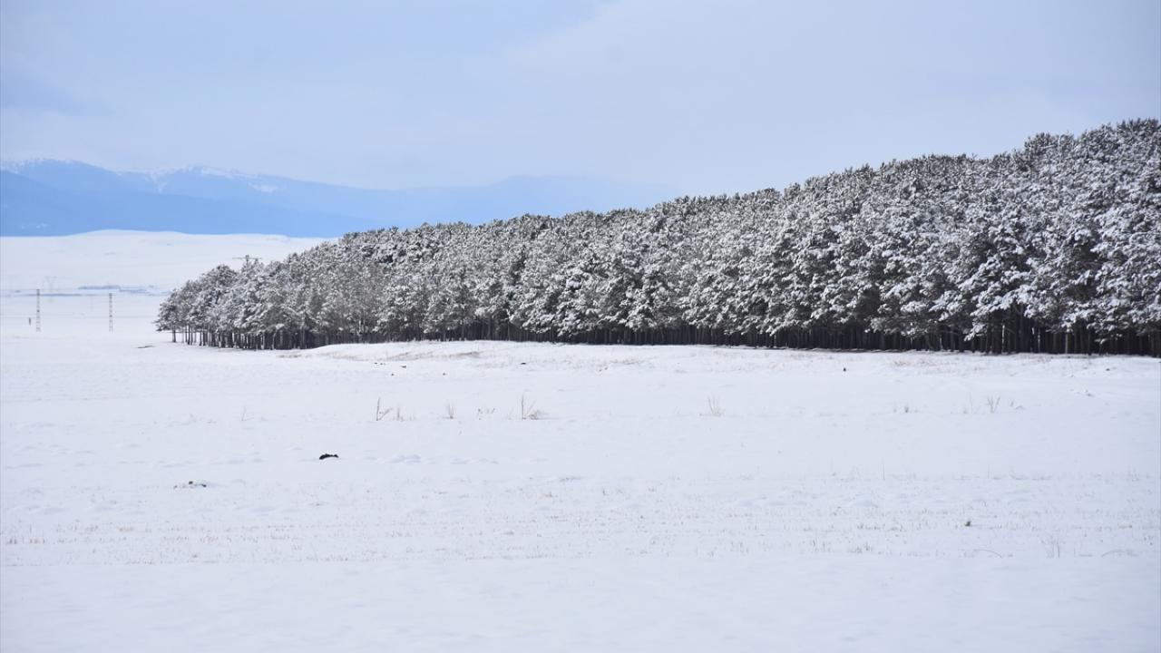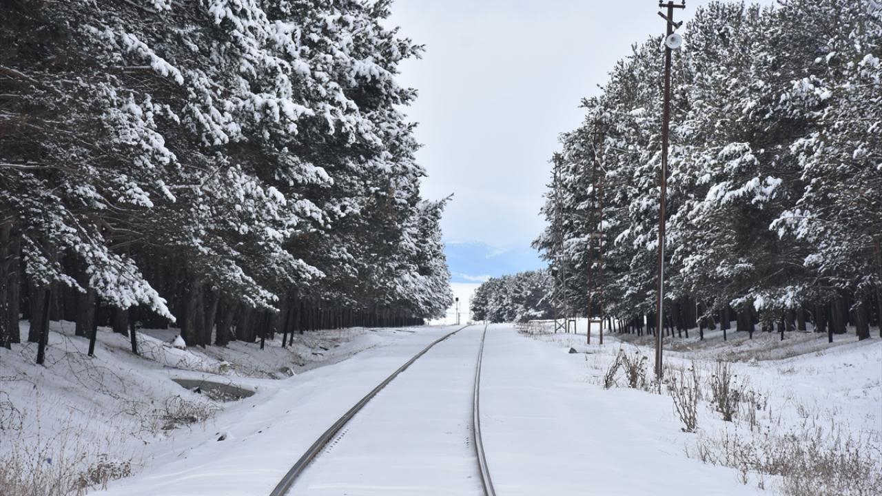 Selim ilçesindeki Benliahmet Tren İstasyonu, kar yağışı sonrası güzel görüntüler ortaya çıkardı.