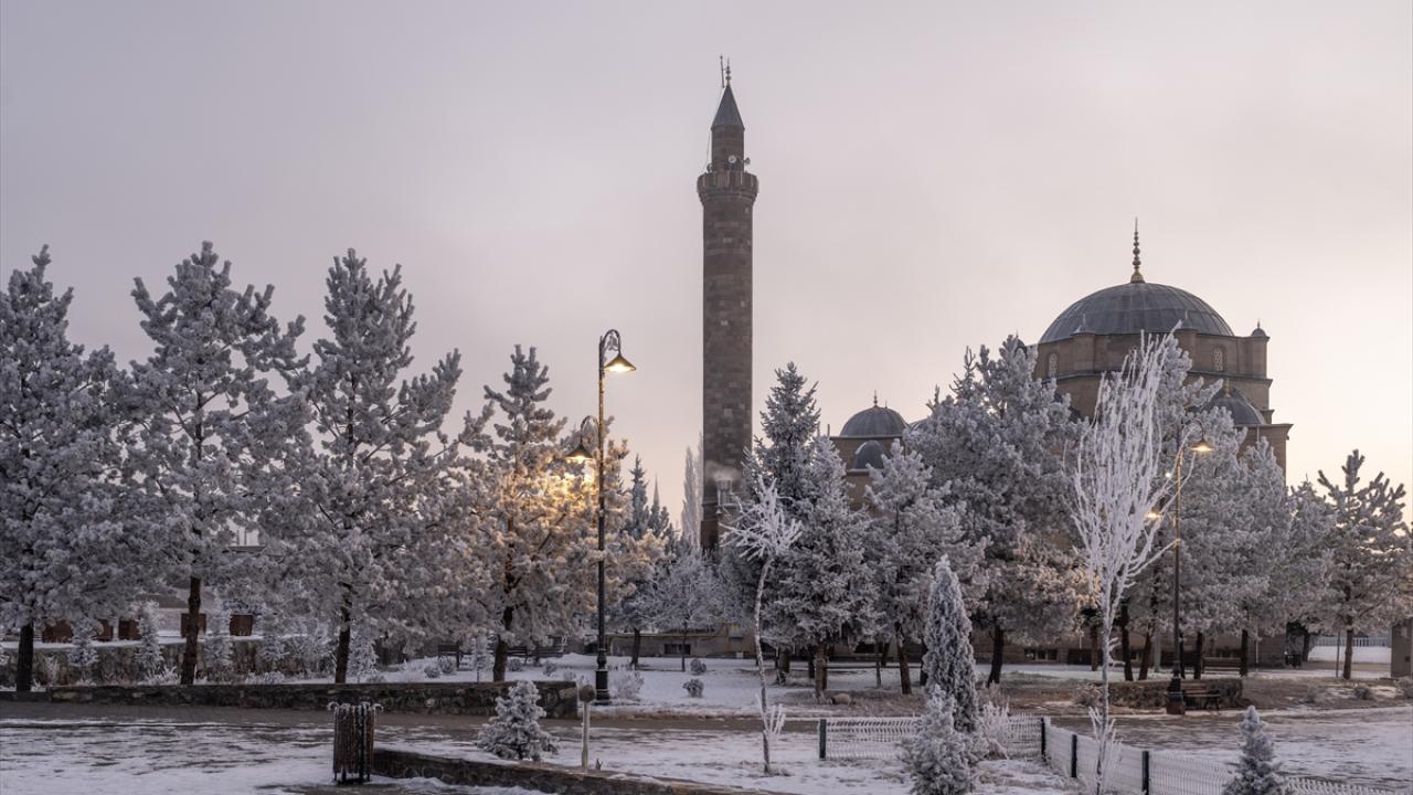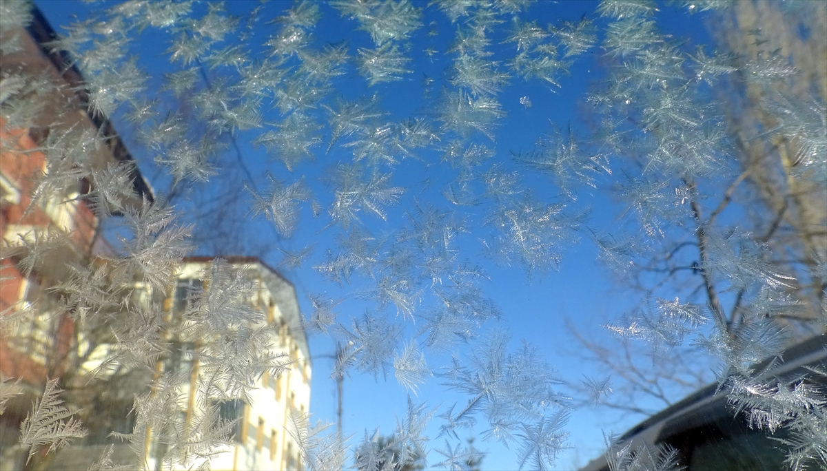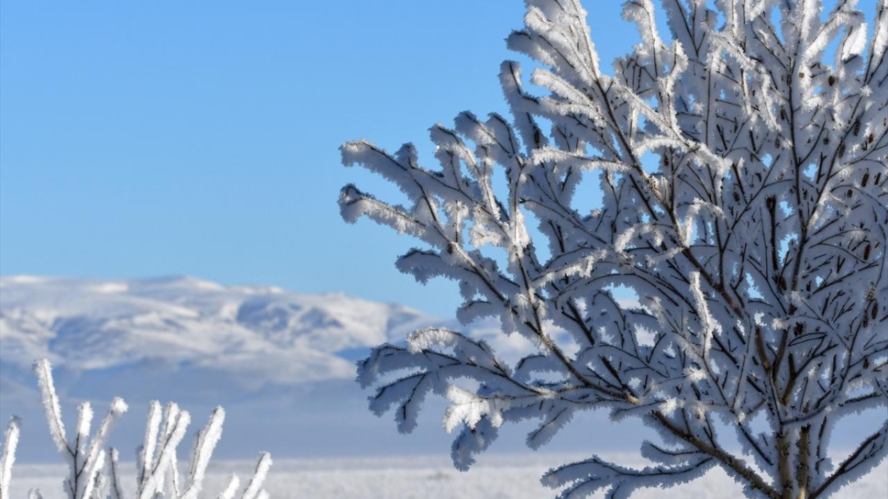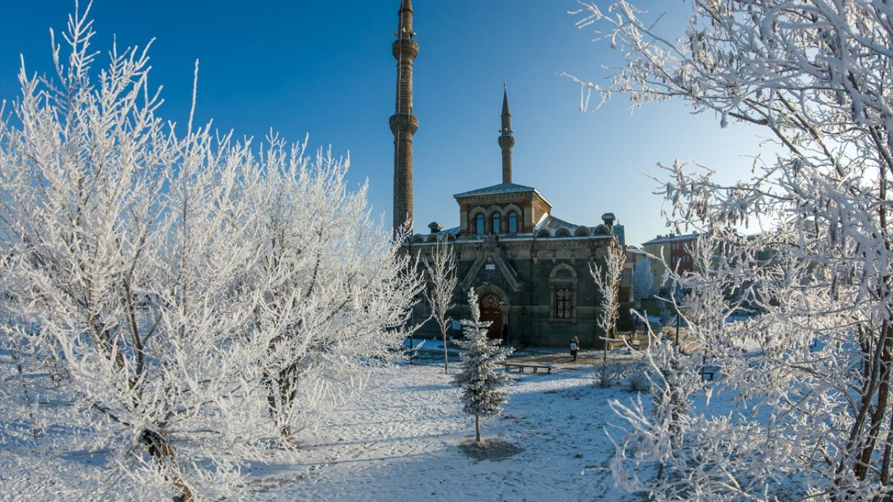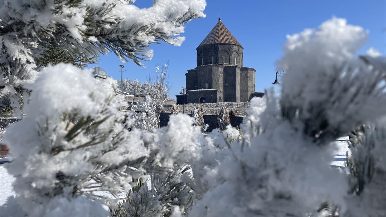 Soğuk havanın etkisiyle bitki ve ağaçlarda kırağı oluştu, Kars Kalesi eteğindeki tarihi yapılar kırağı tutan ağaçlarla güzel bir görüntü oluşturdu.
