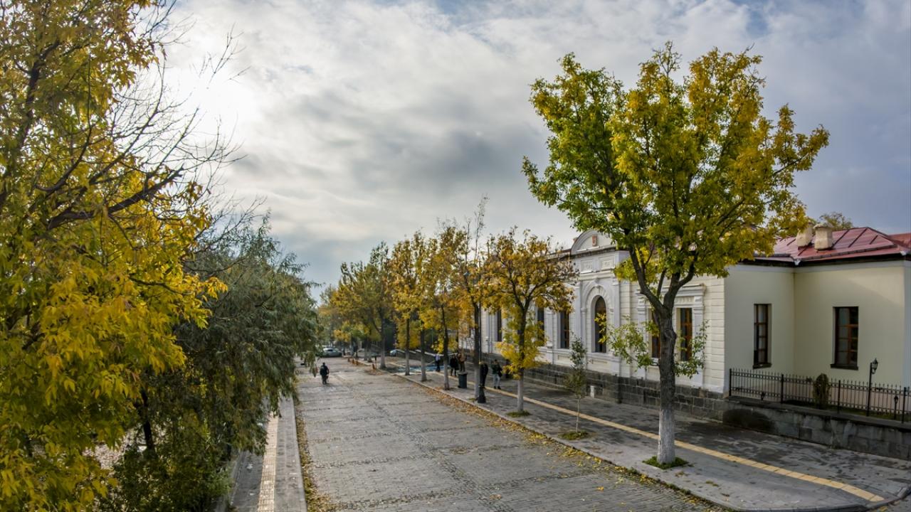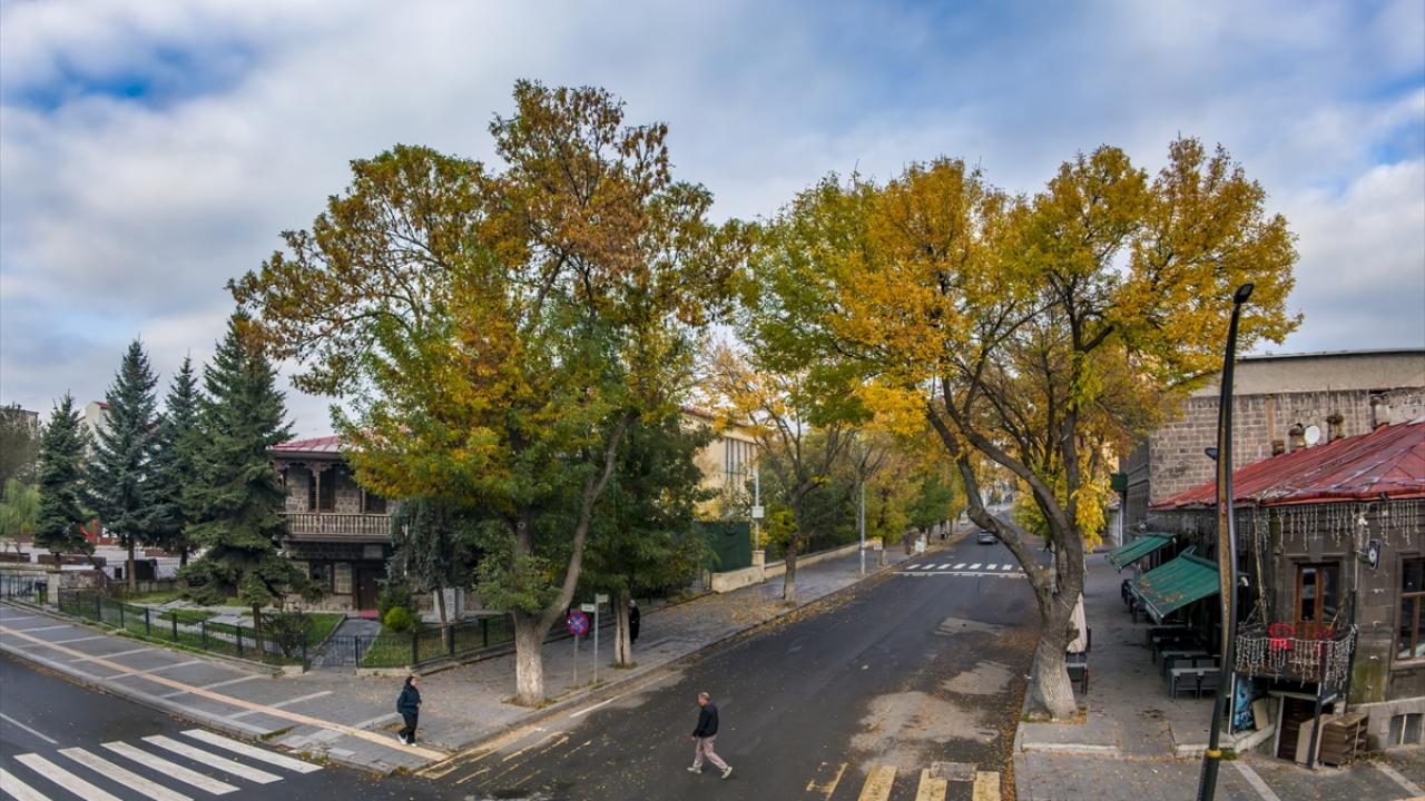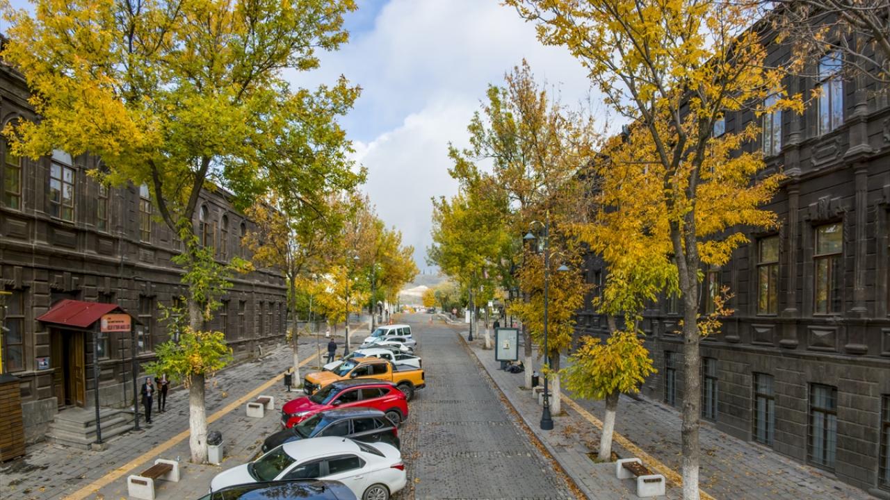 Kars sokaklarında sonbaharın gelmesiyle ağaçlar sarı, kahverengi ve kızılın tonlarına büründü.