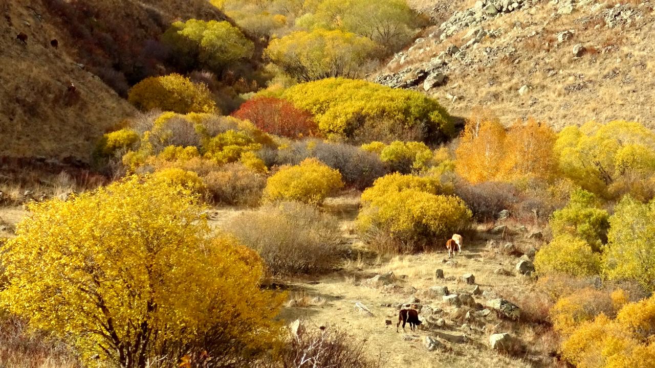 Türkiye'nin en yüksek yerleşim yerlerinden Kars'ın Sarıkamış ilçesinde sarı, kahverengi ve kızılın tonlarına bürünen kavak, kuşburnu ile kayın ağaçları sonbaharın son güzelliklerini yaşatıyor.