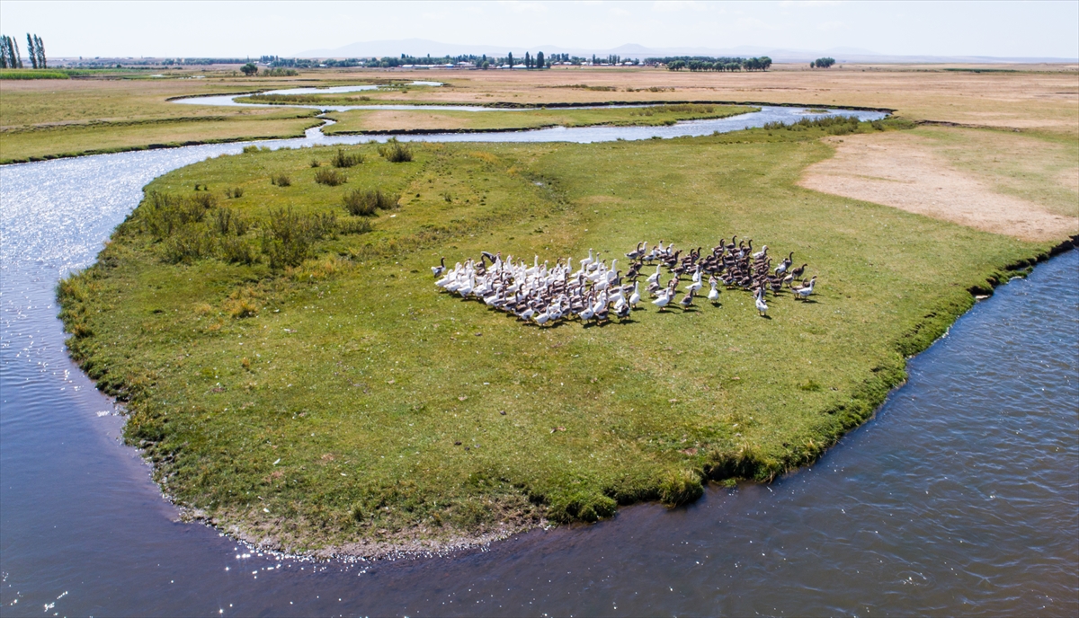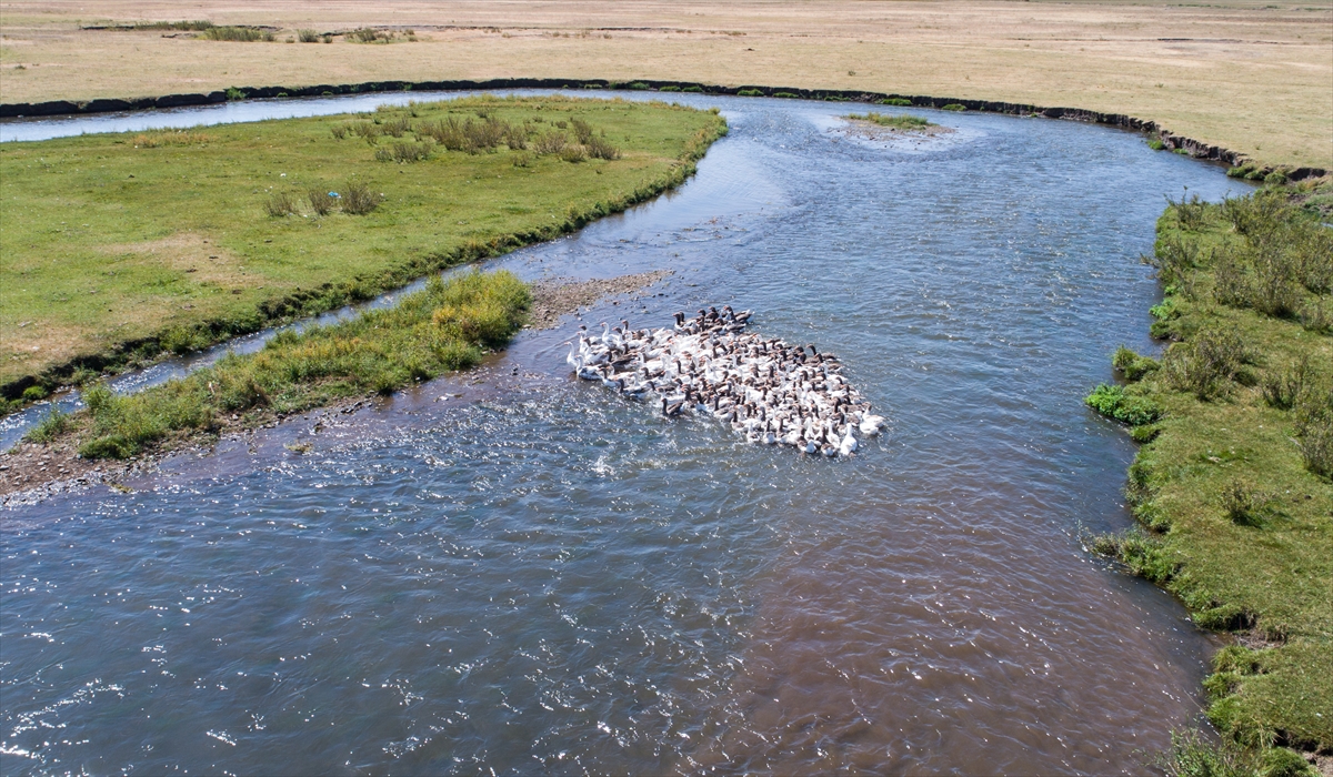 Yöre halkının tarlasını suladığı, balık tuttuğu, kazlarını yüzdürdüğü akarsuyun çevresindeki otlaklarda ise besiciler hayvanlarını otlatıyor.