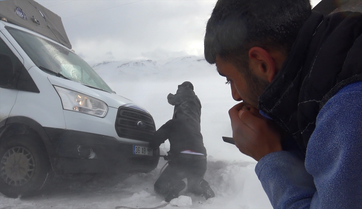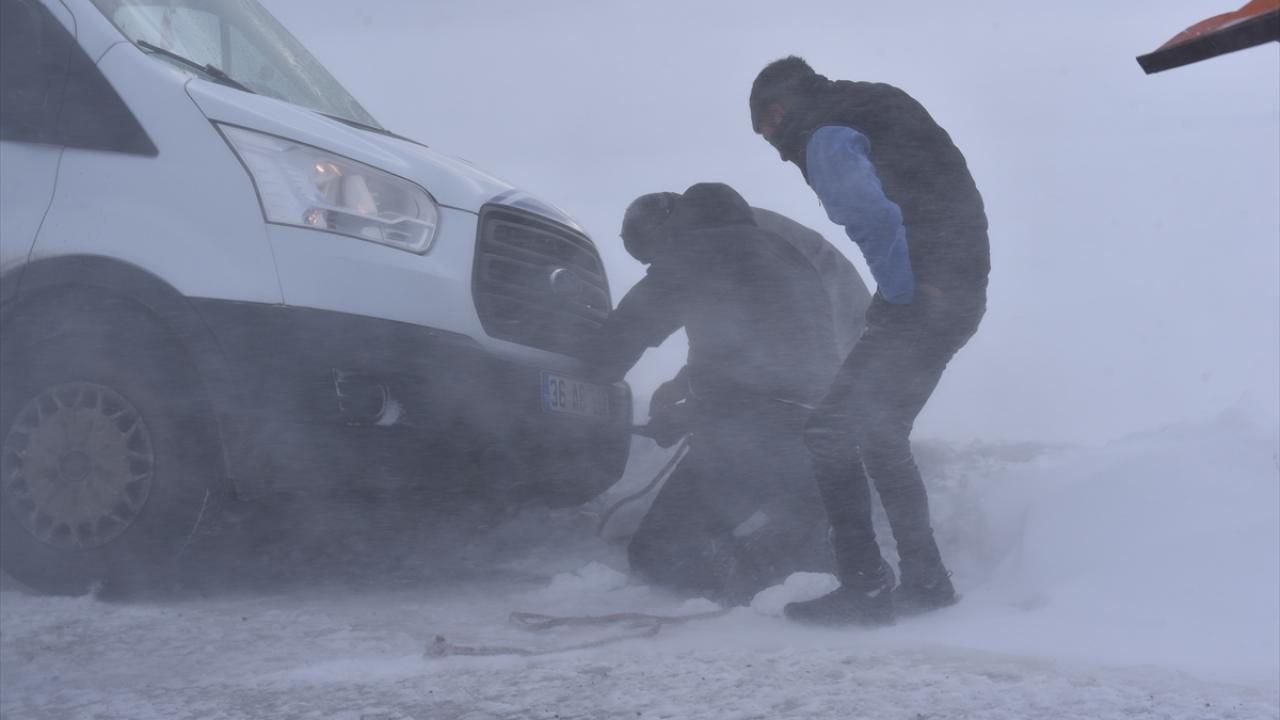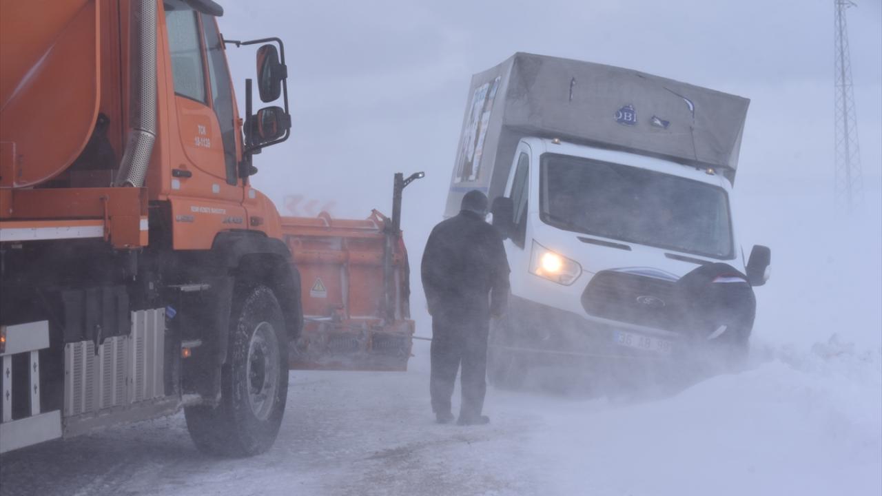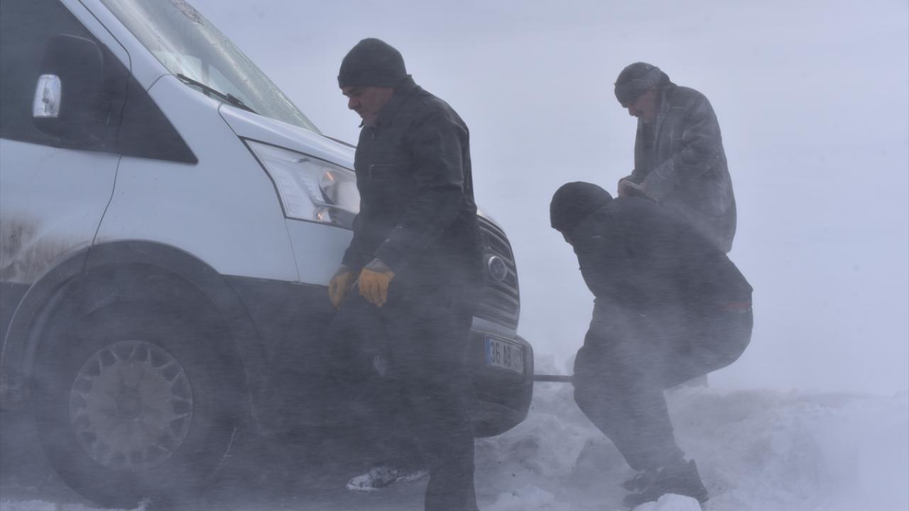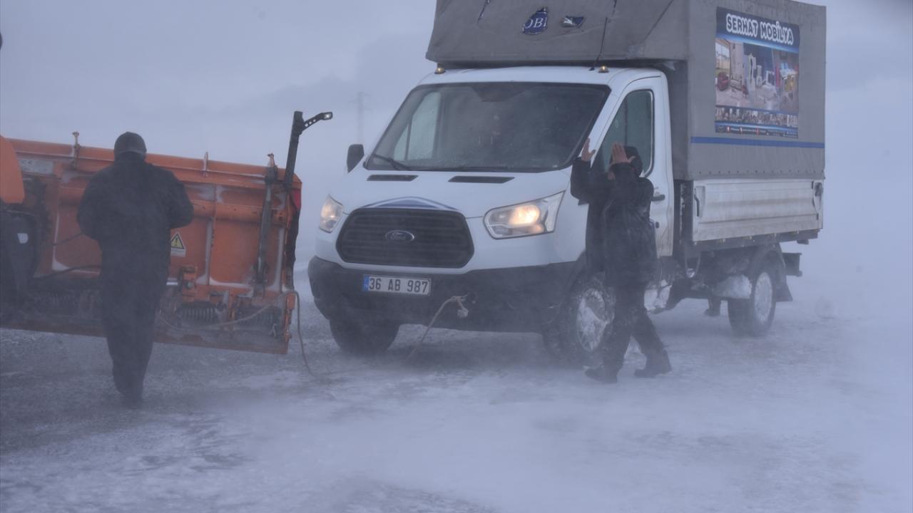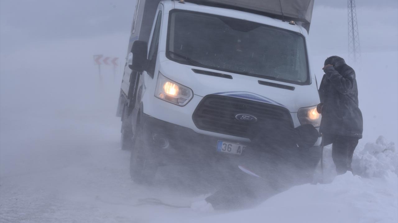 Kars-Göle kara yolunda da tipi dolayısıyla ağır tonajlı araçlar ilerleyemedi.