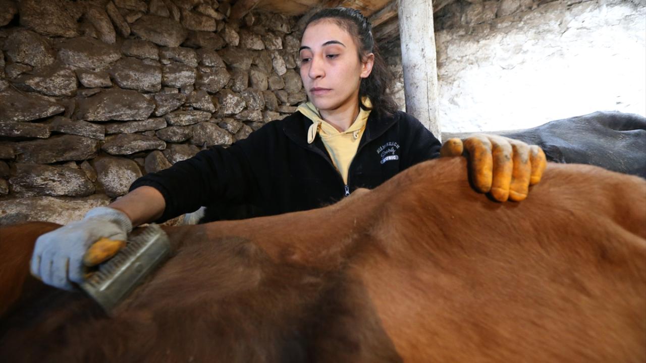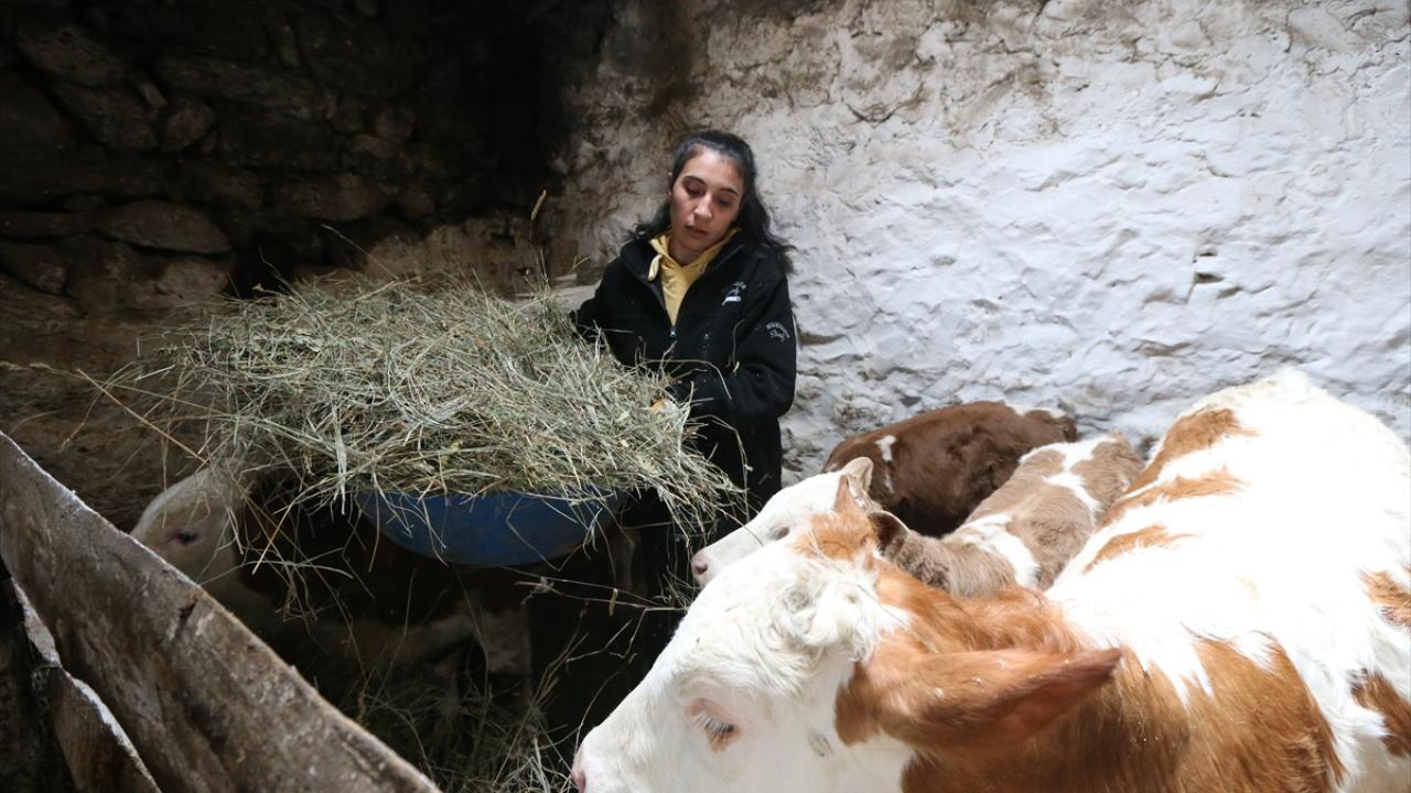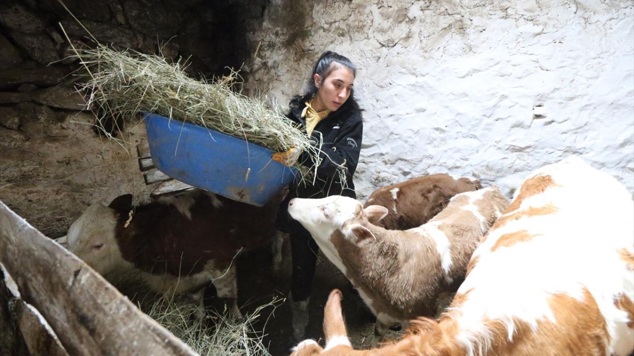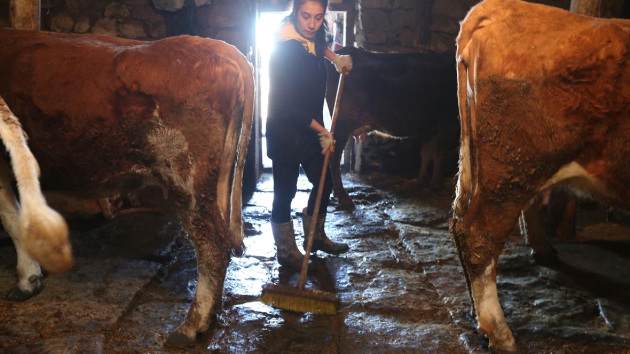 Kars'ta Tarım ve Orman Bakanlığının hibe desteğiyle üniversite mezuniyetinin ardından 4 büyükbaş hayvan satın alan 25 yaşındaki Hilal Erben, hayvan sayısını 3 yılda 11'e çıkarttı.