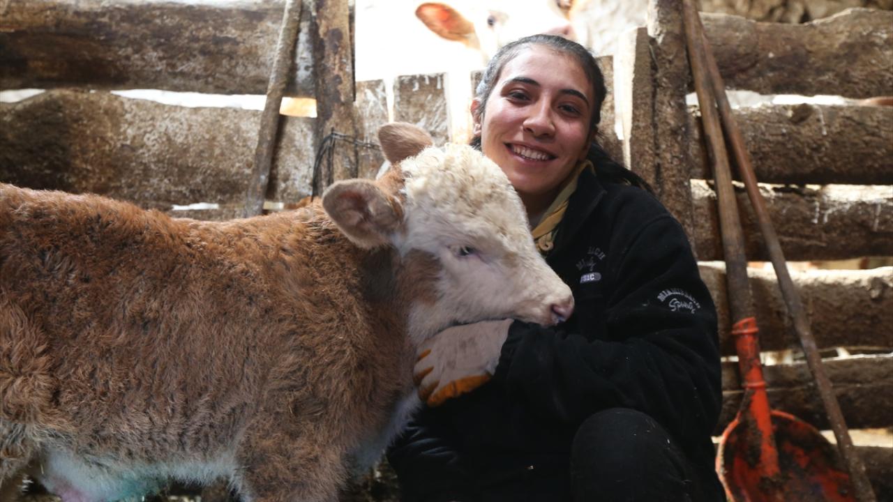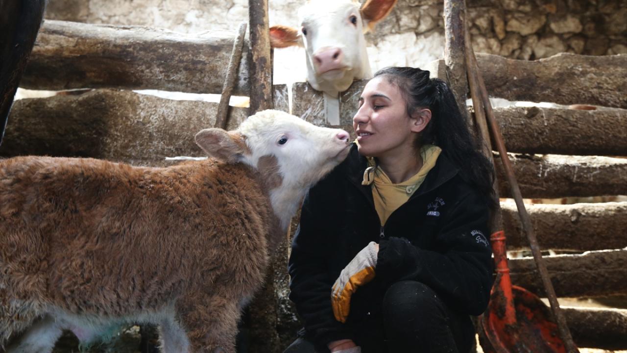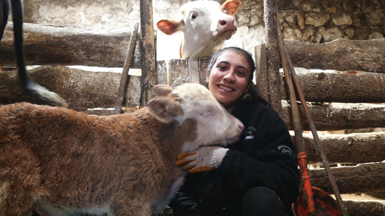 Aldığı eğitim sayesinde hayvanlarına hem veterinerlik hem de bakıcılık yapan Erben, hayvanlarından dünyaya gelen buzağıları da gözü gibi koruyor.