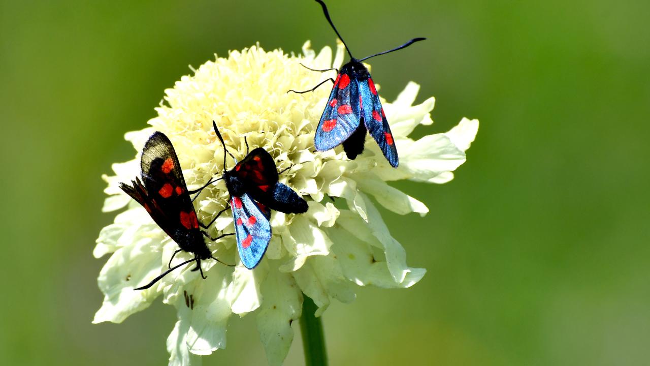 Mavi, kırmızı, kahverengi ve beyaz renkleriyle kondukları çiçekleri süsleyen kelebekler, doğaya ayrı güzellik katıyor.