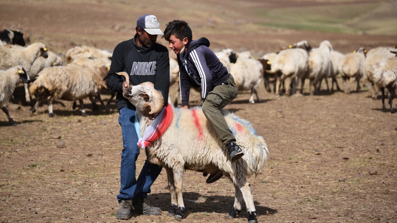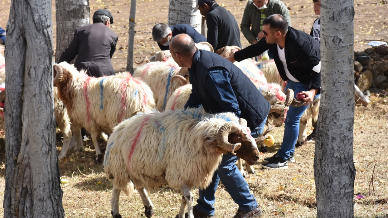 Köy sakinleri önce çeşitli renklere boyadıkları, ardından bereketin sembolü yiyeceklerden elma, nar ve şekerlemeleri boyun ve boynuzlarına taktıkları koçları süsleyip sürüye kattı.