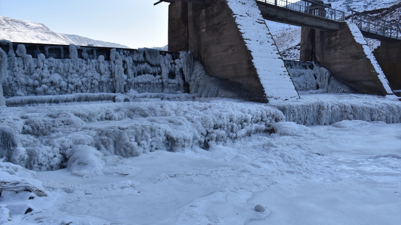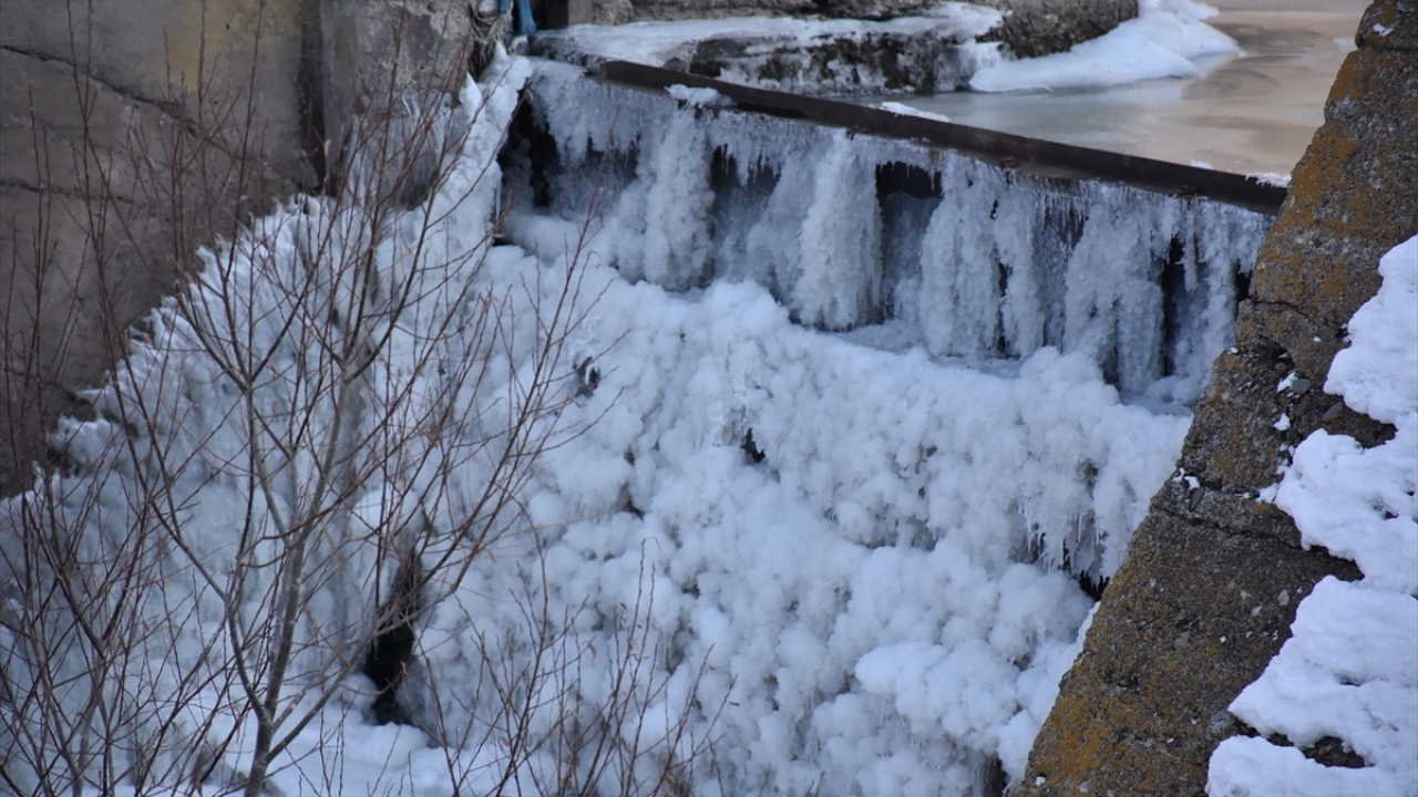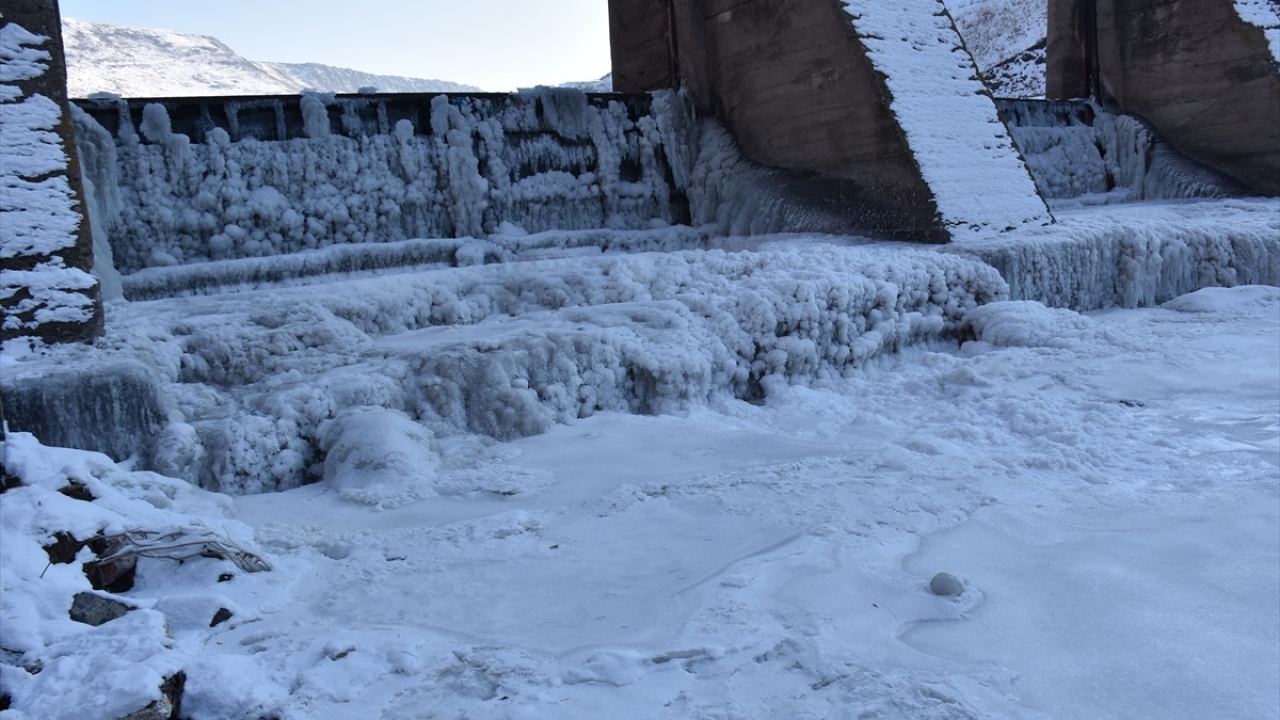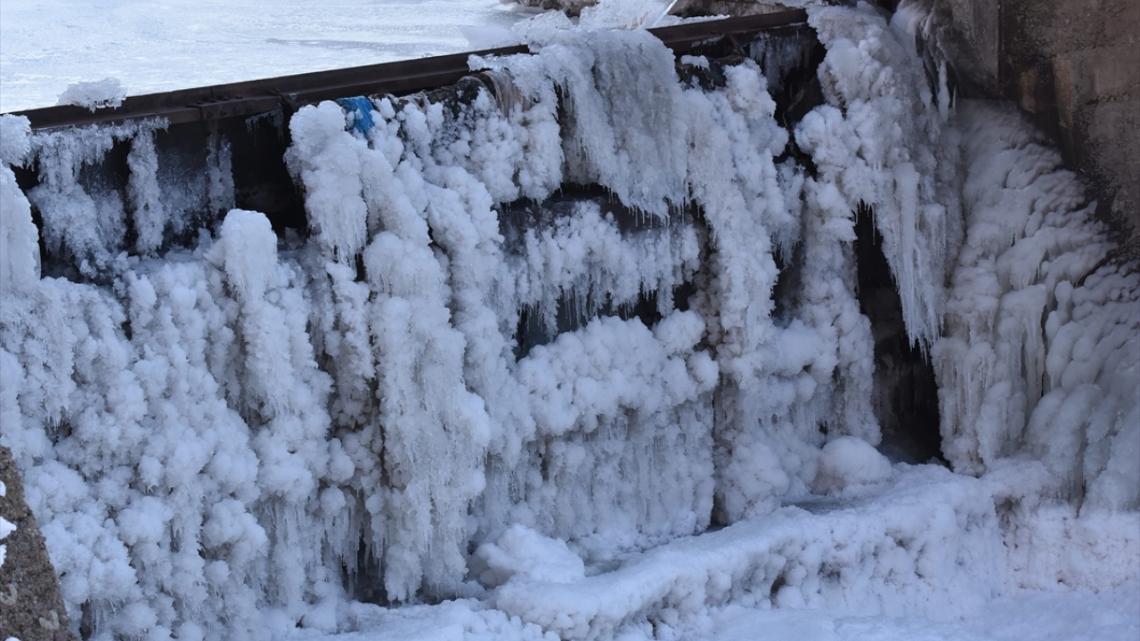 Doğu Anadolu Bölgesi'nde etkili olan Sibirya soğukları nedeniyle Kars'taki eski hidroelektrik santralinin (HES) baraj gölü yüzeyi dondu.