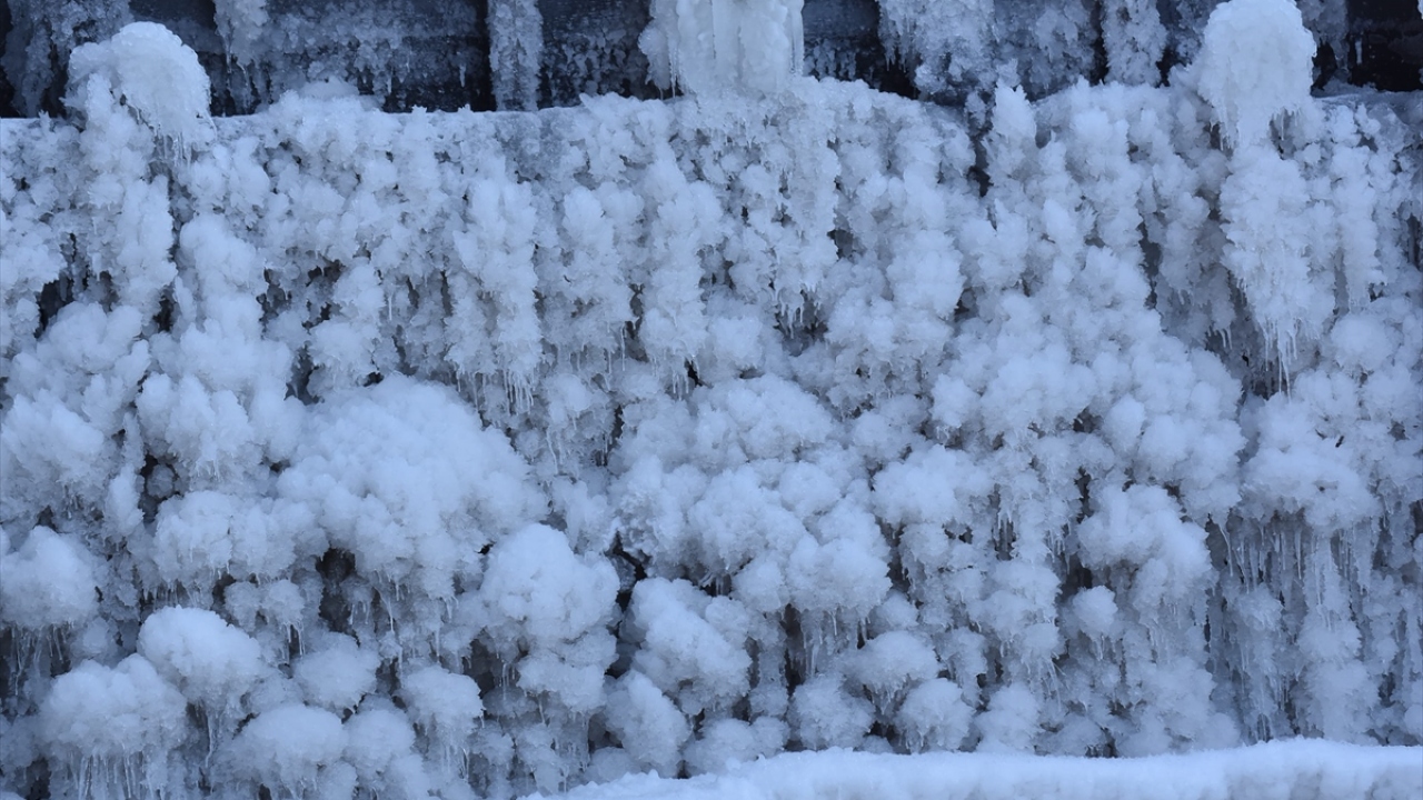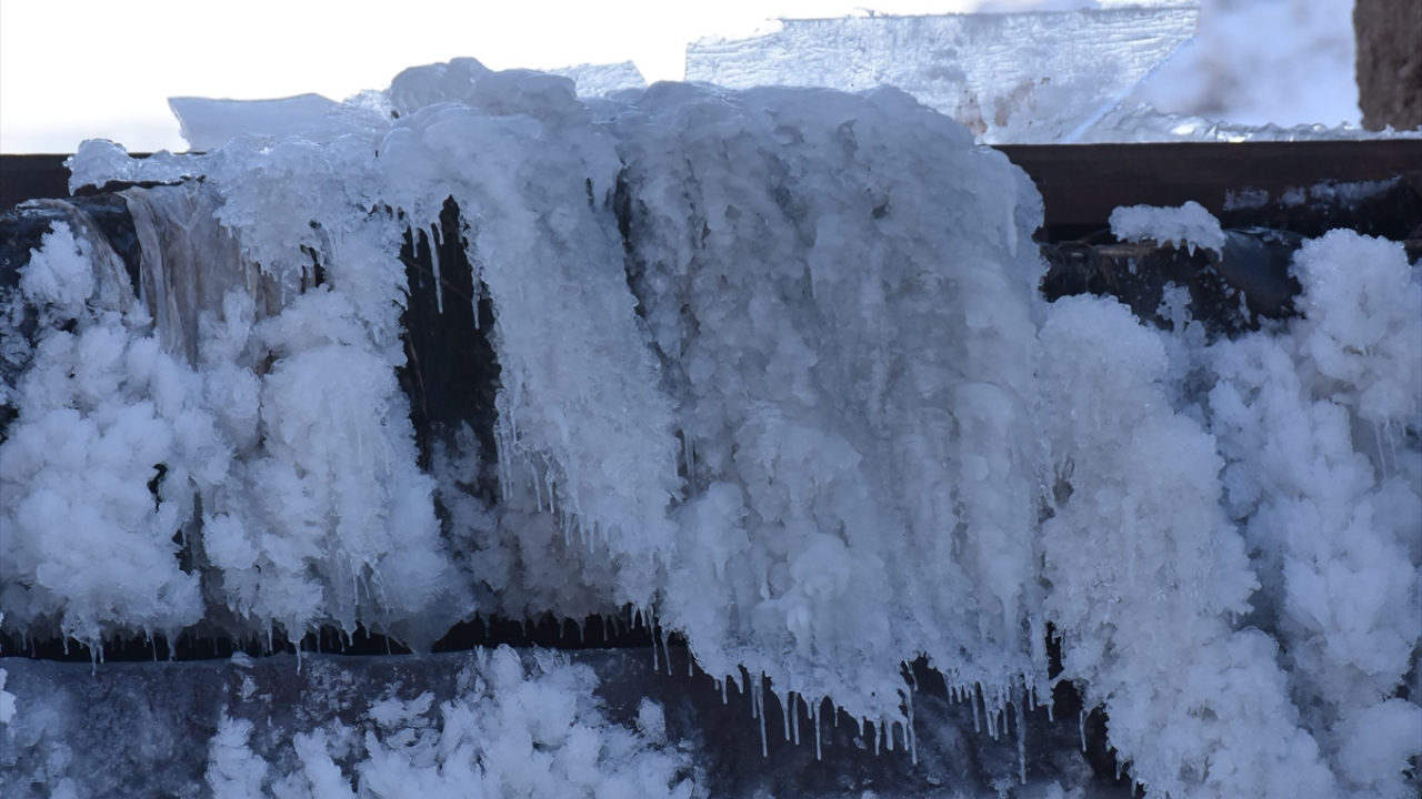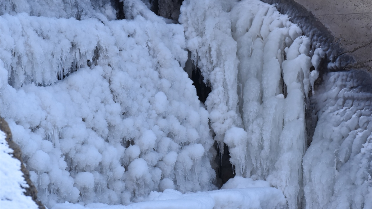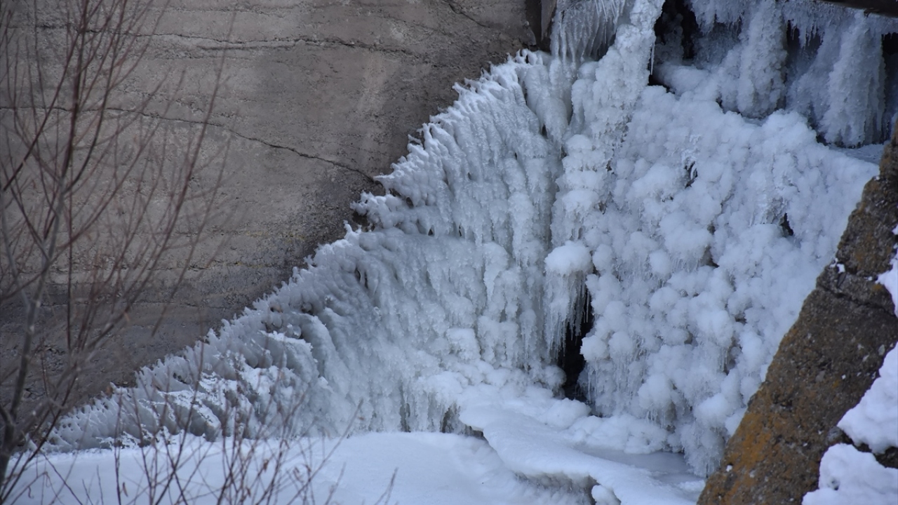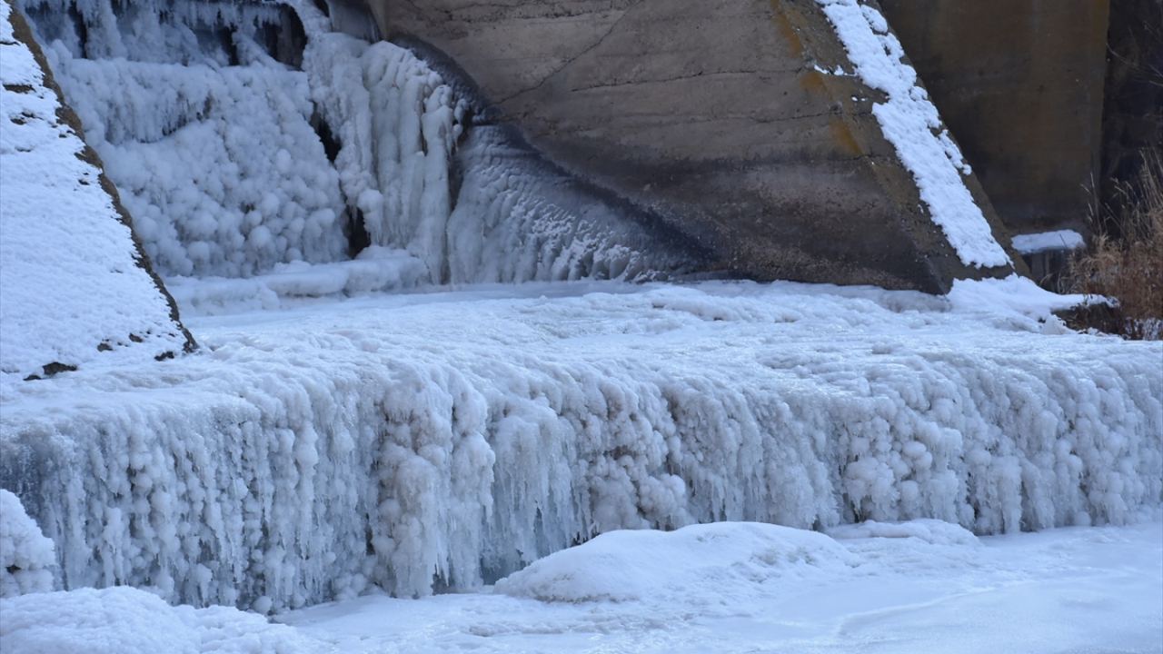 Doğu Anadolu Bölgesi'nde etkili olan Sibirya soğukları nedeniyle Kars'taki eski hidroelektrik santralinin (HES) baraj gölü yüzeyi dondu.