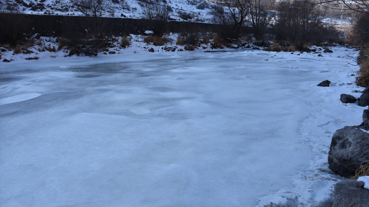 Hava sıcaklığının gece sıfırın altında 21 dereceye düştüğü Kars`taki dere ve göletler buzla kaplandı.