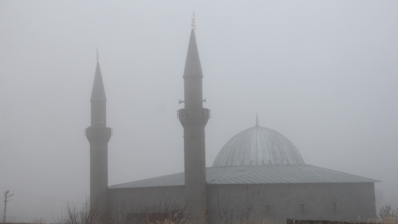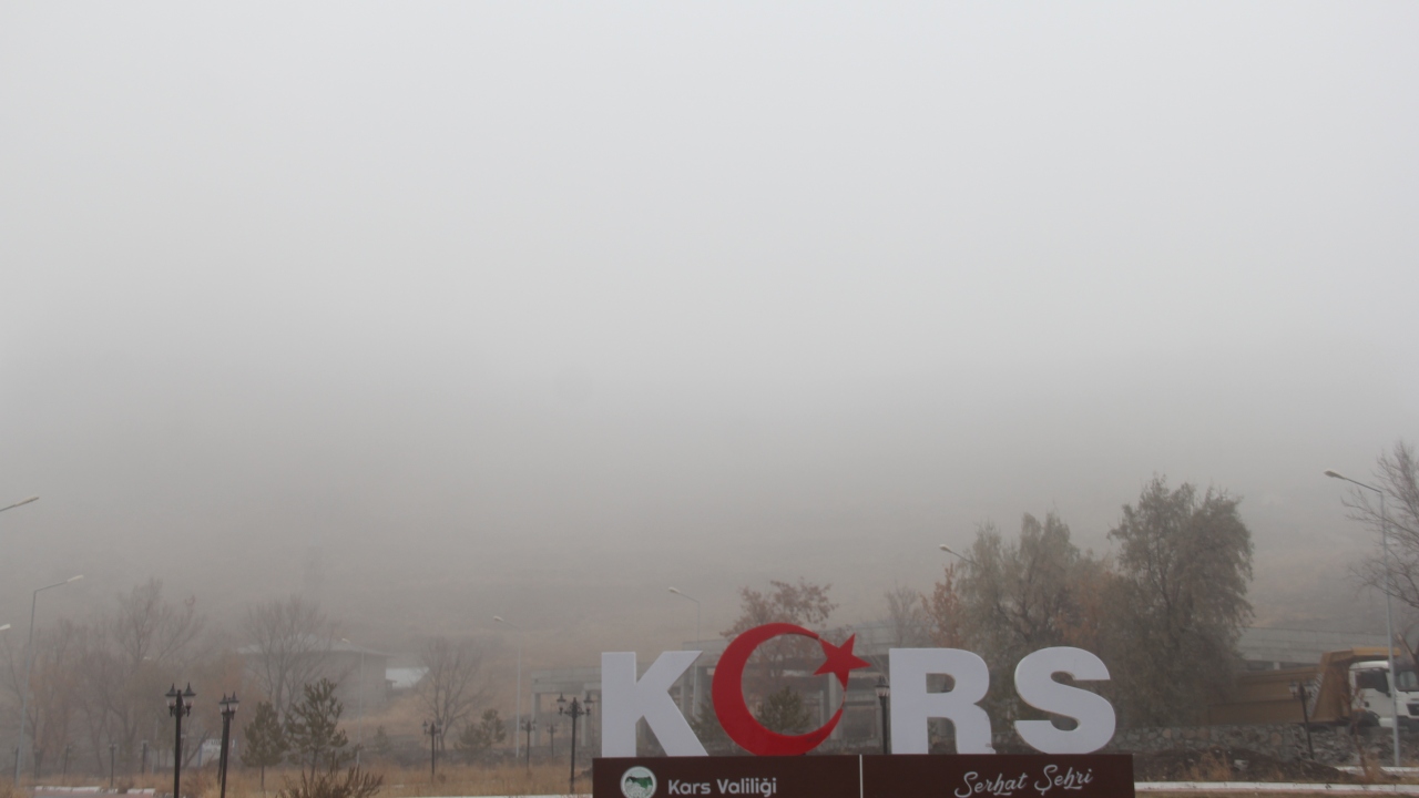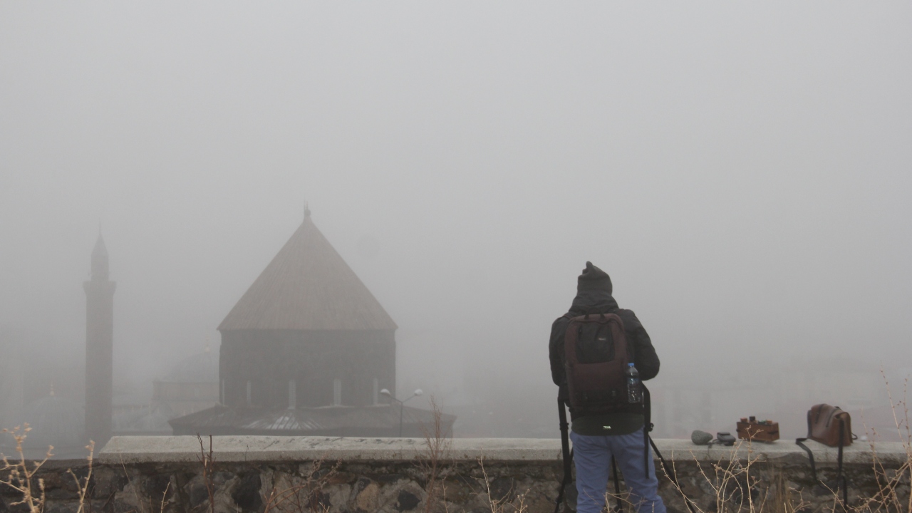 Kars'ta etkili olan sis, tarihi yapılarla birlikte güzel manzaralar oluşturdu.