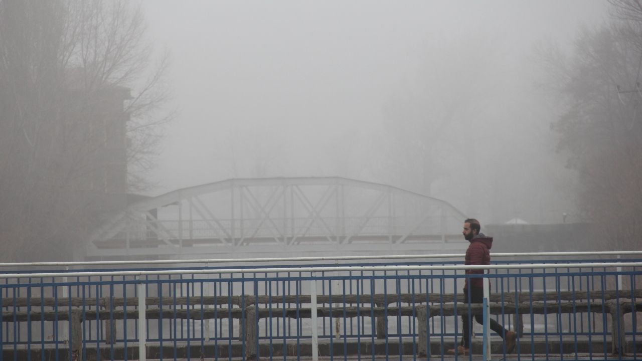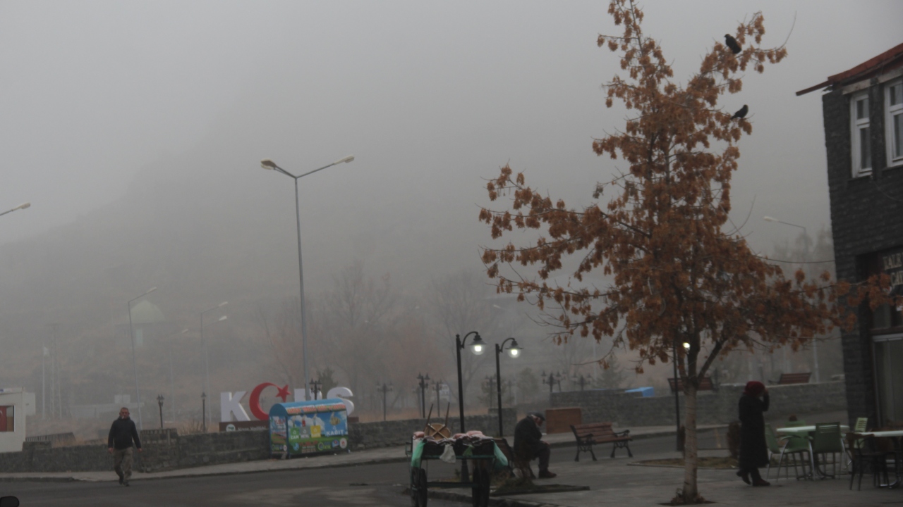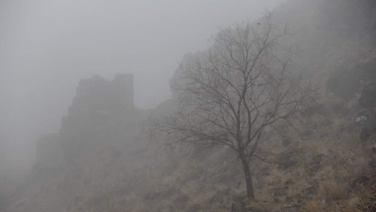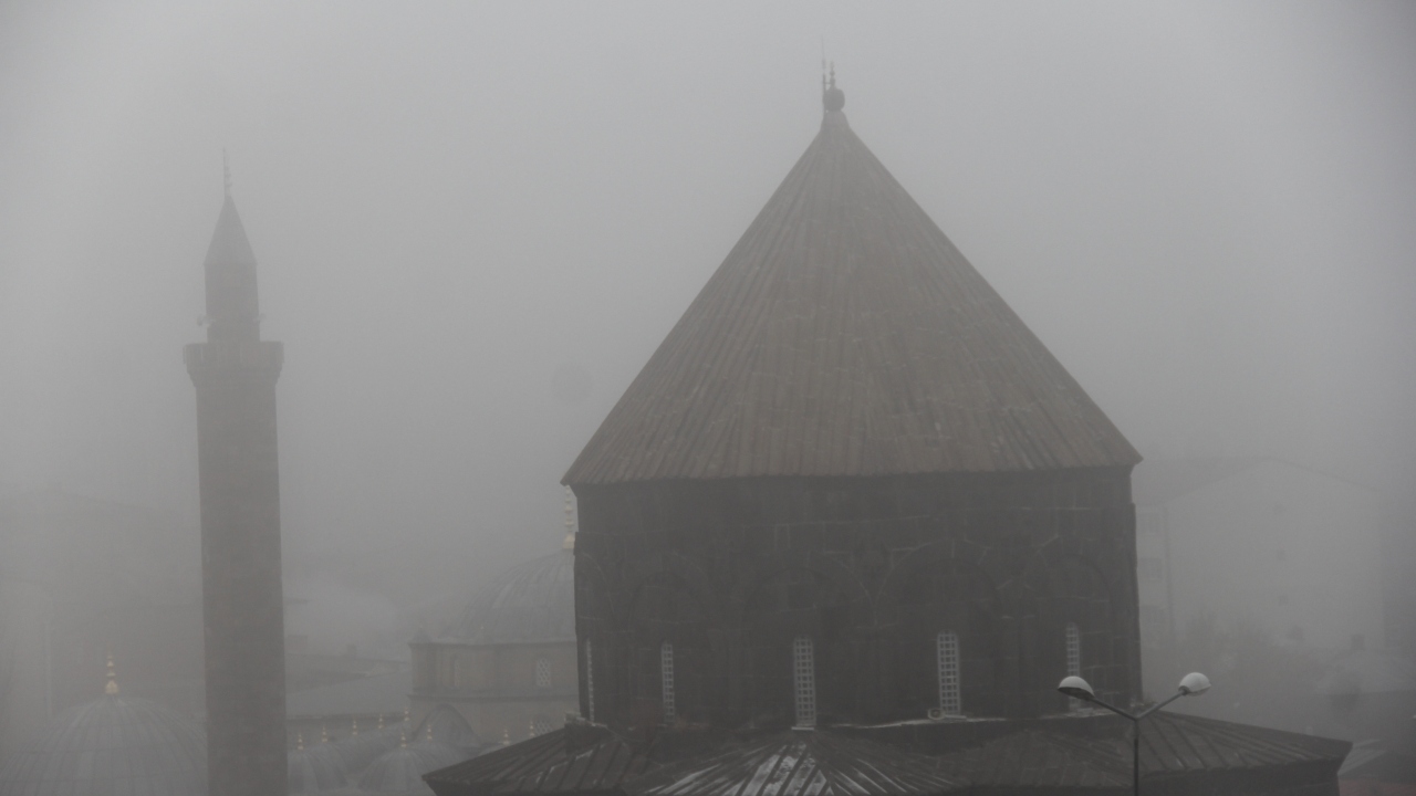 Kars'ta etkili olan sis, tarihi yapılarla birlikte güzel manzaralar oluşturdu.