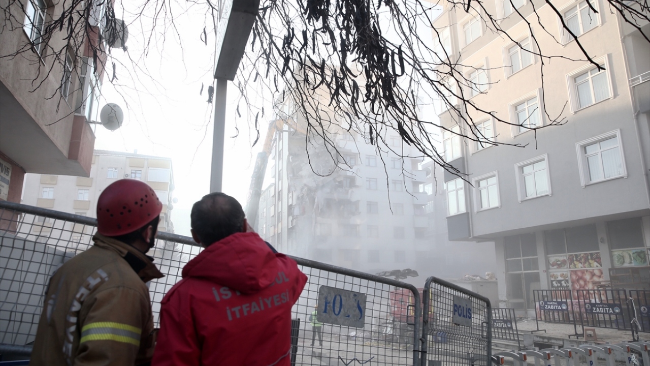 Bu kapsamda dün başlanan Yunus Apartmanı`nın yıkım işlemlerine akşam saatlerinde ara verilmişti.