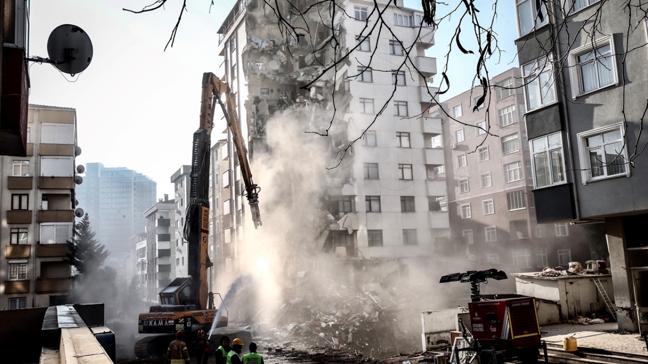 Kartal'da çöken Yeşilyurt Apartmanı'nın bitişiğindeki 10 katlı Yunus Apartmanı'nın yıkım işlemlerine sabah saatlerinde devam edildi.