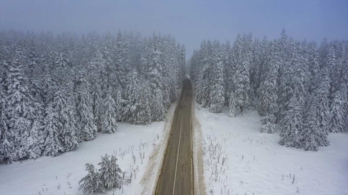 Bolu`ya yaklaşık 45 kilometre uzaklıkta bulunan Kartalkaya Kayak Merkezi`ne giden yol, kentte hafta sonundan itibaren aralıklarla etkili olan kar yağışının ardından beyaza büründü.