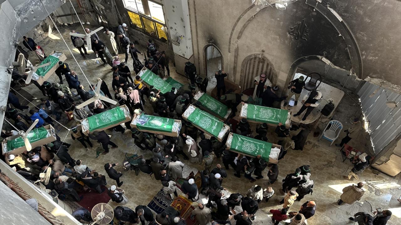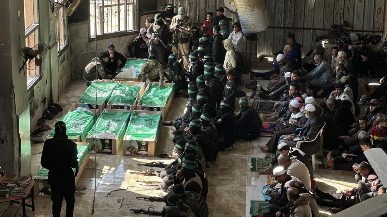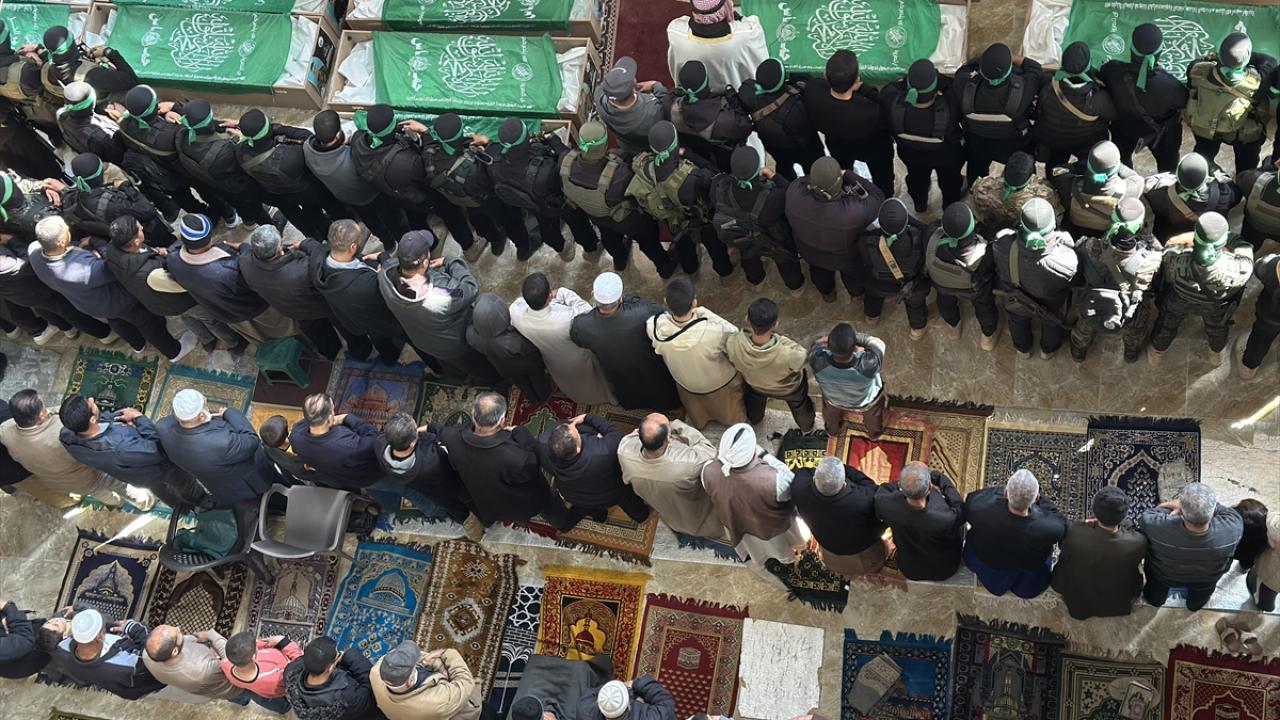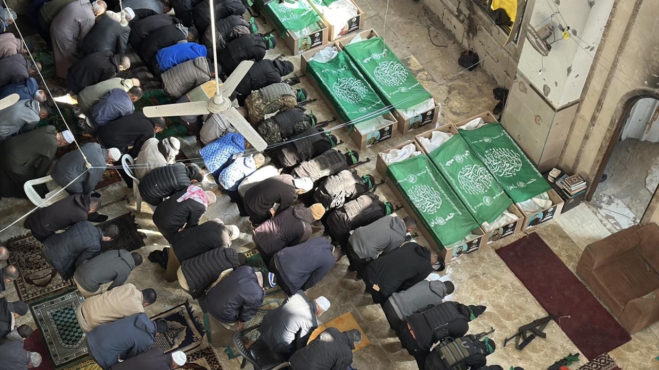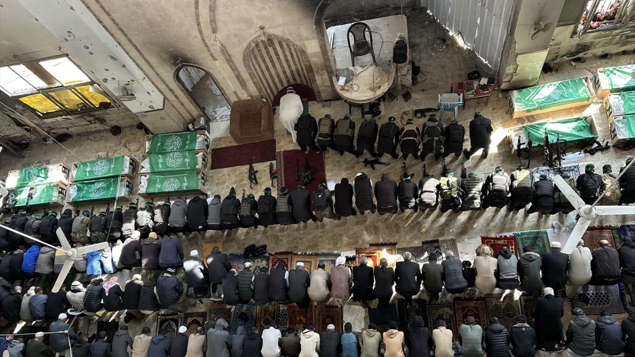 Gazze Şeridi`nin güneyindeki Han Yunus kentinde kılınan cuma namazı sonrası, daha önce katil İsrail saldırılarında hayatını kaybeden Hamas`ın silahlı kanadı Kassam Tugayları üyeleri için cenaze töreni düzenlendi.