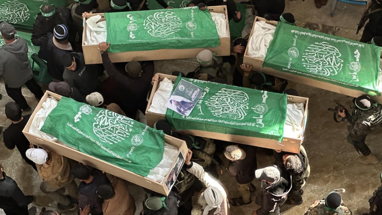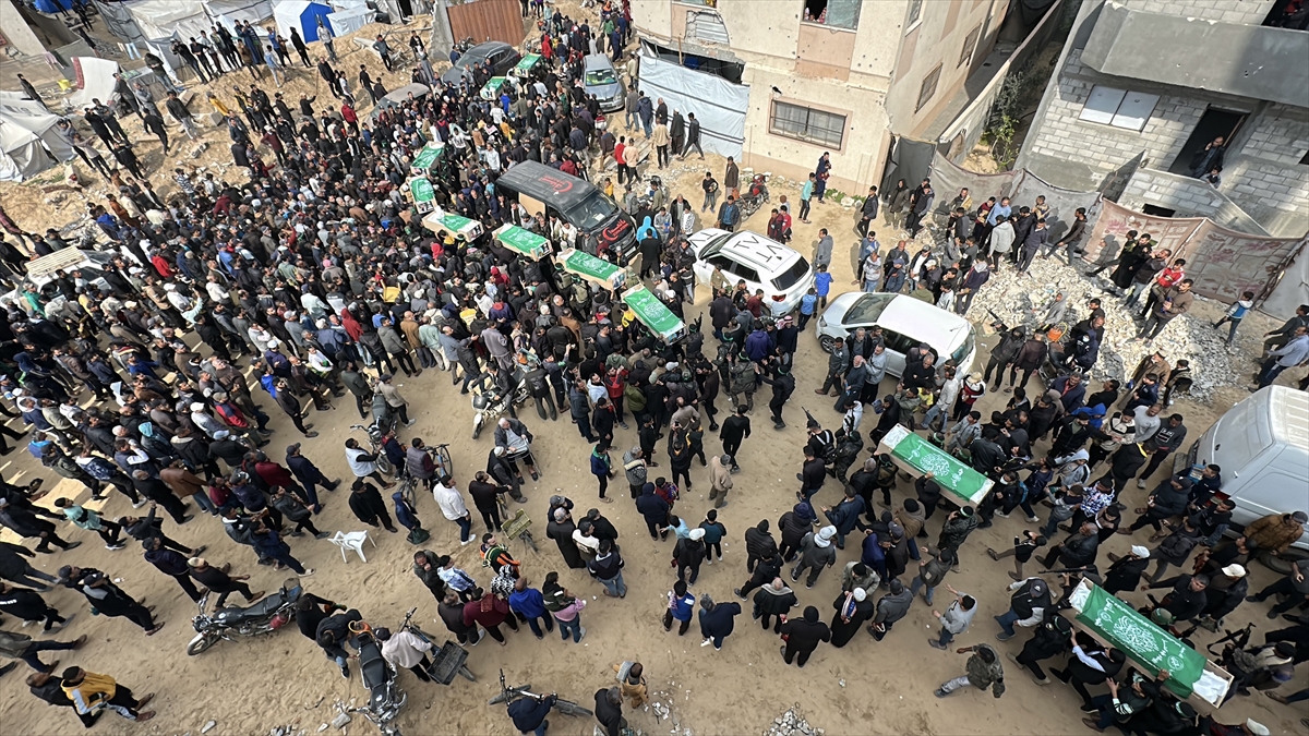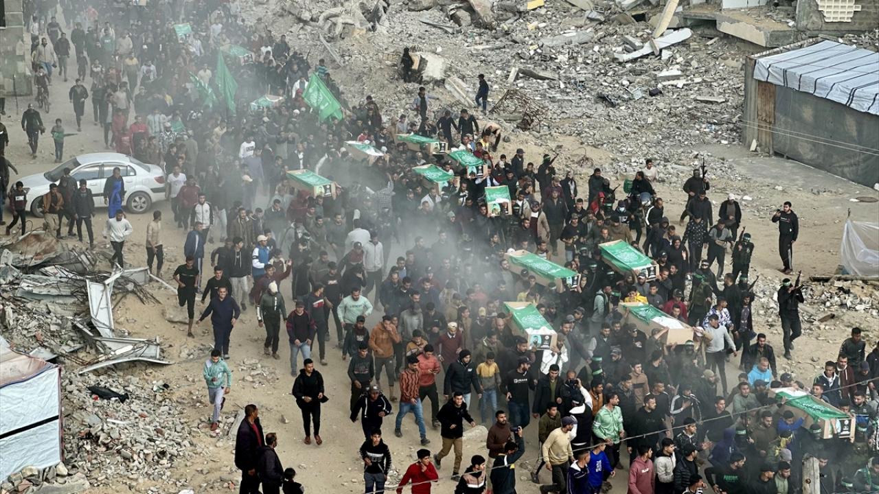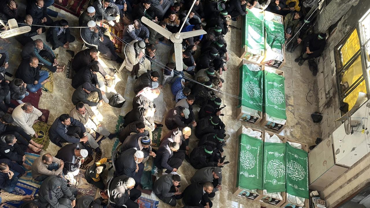Gazze Şeridi`nin güneyindeki Han Yunus kentinde kılınan cuma namazı sonrası, daha önce katil İsrail saldırılarında hayatını kaybeden Hamas`ın silahlı kanadı Kassam Tugayları üyeleri için cenaze töreni düzenlendi.