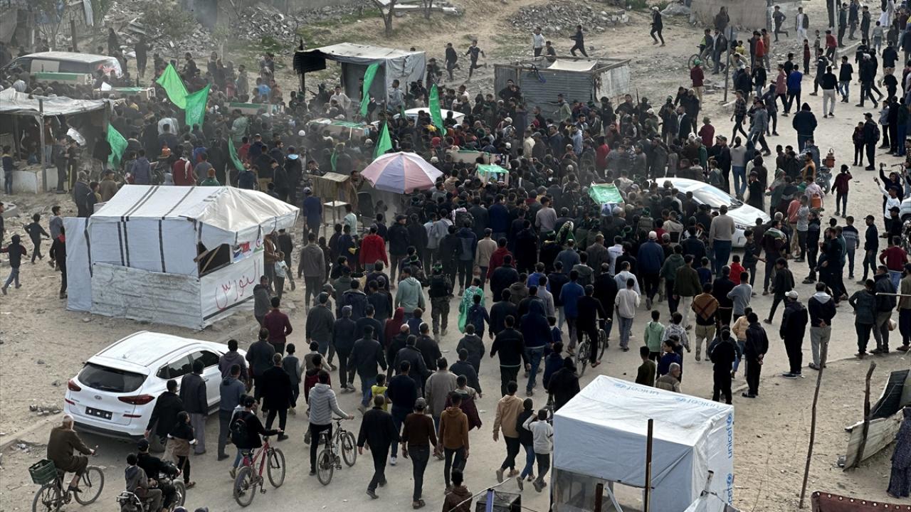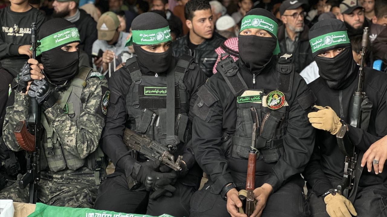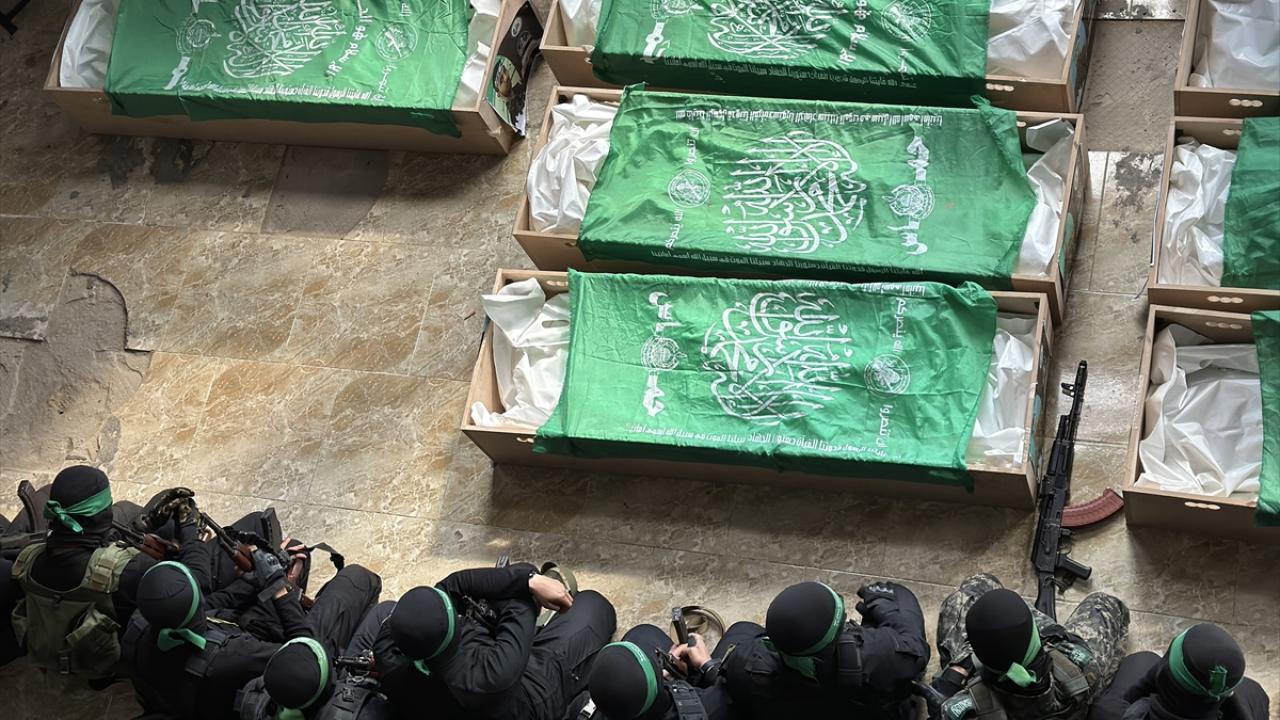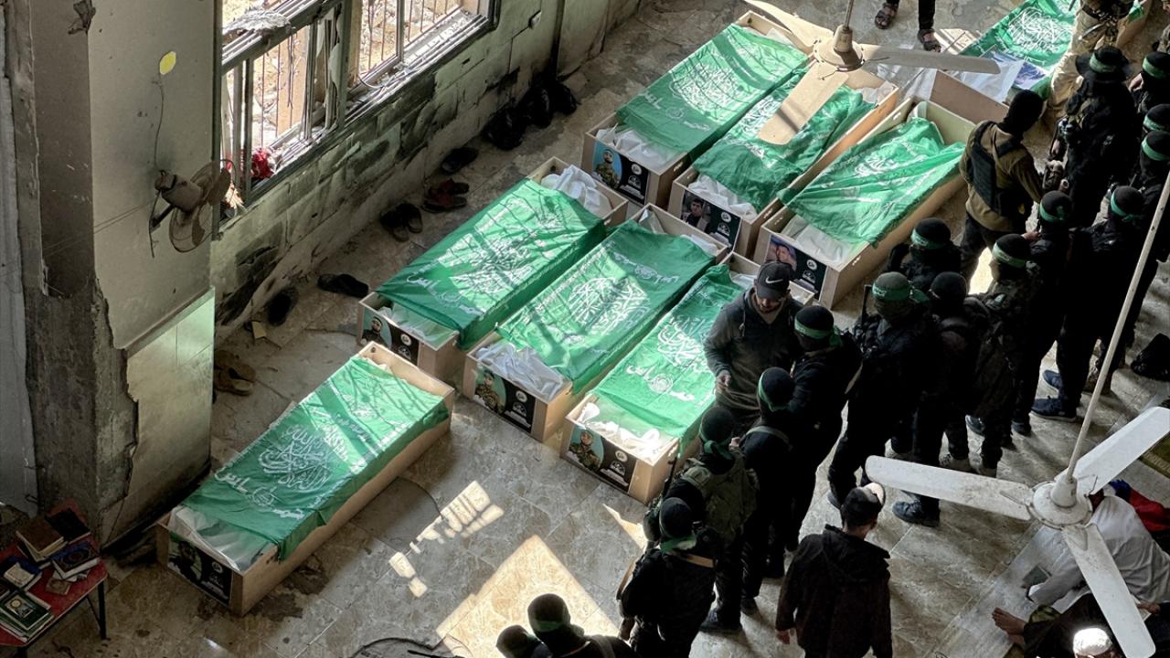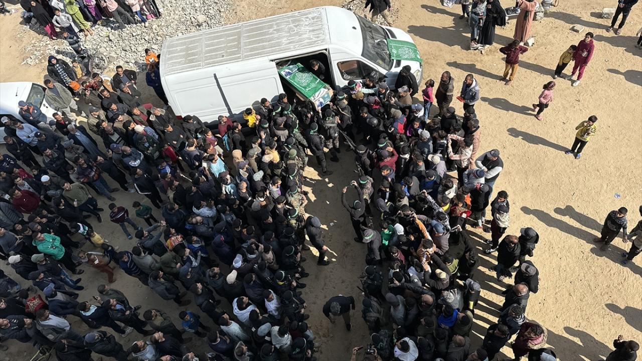 Gazze Şeridi`nin güneyindeki Han Yunus kentinde kılınan cuma namazı sonrası, daha önce katil İsrail saldırılarında hayatını kaybeden Hamas`ın silahlı kanadı Kassam Tugayları üyeleri için cenaze töreni düzenlendi.
