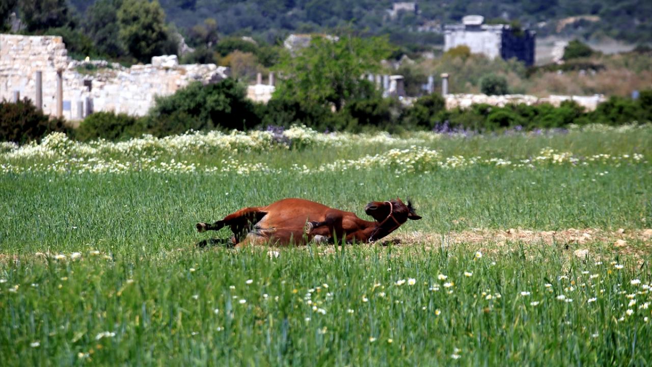 İlkbahar renklerinin doğal ve tarihi dokusuna ayrı bir güzellik kattığı Patara`da, papatyaların gelinciklerle kucaklaştığı tarlalar baharın en güzel renklerini yansıtıyor.