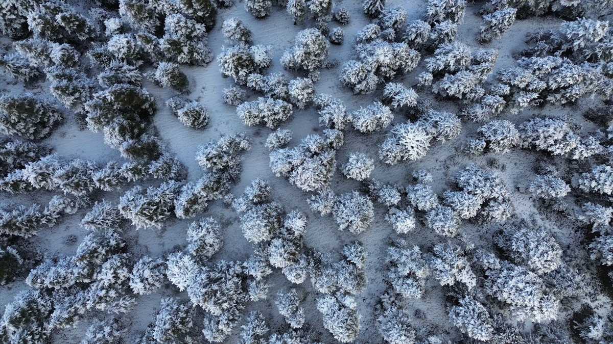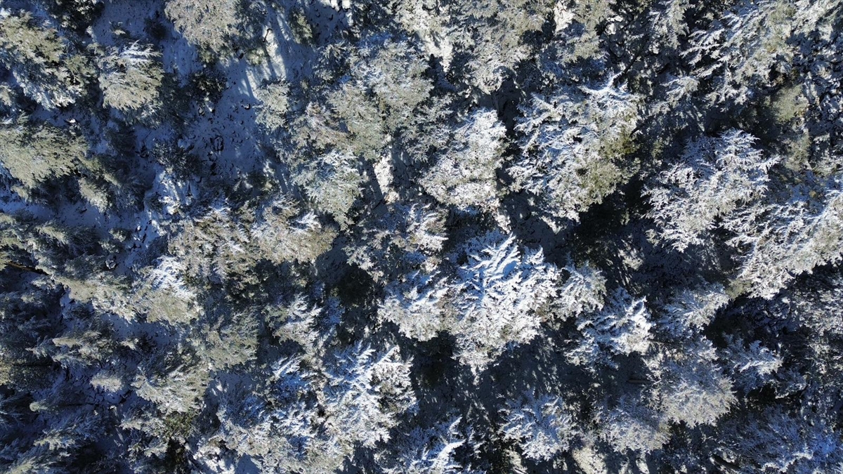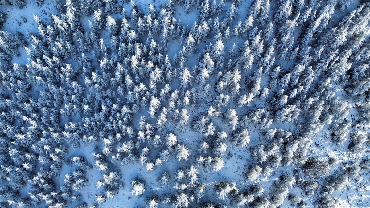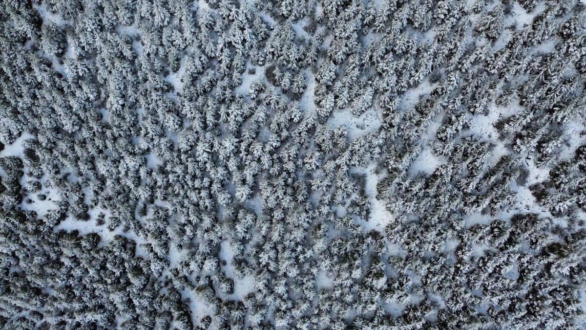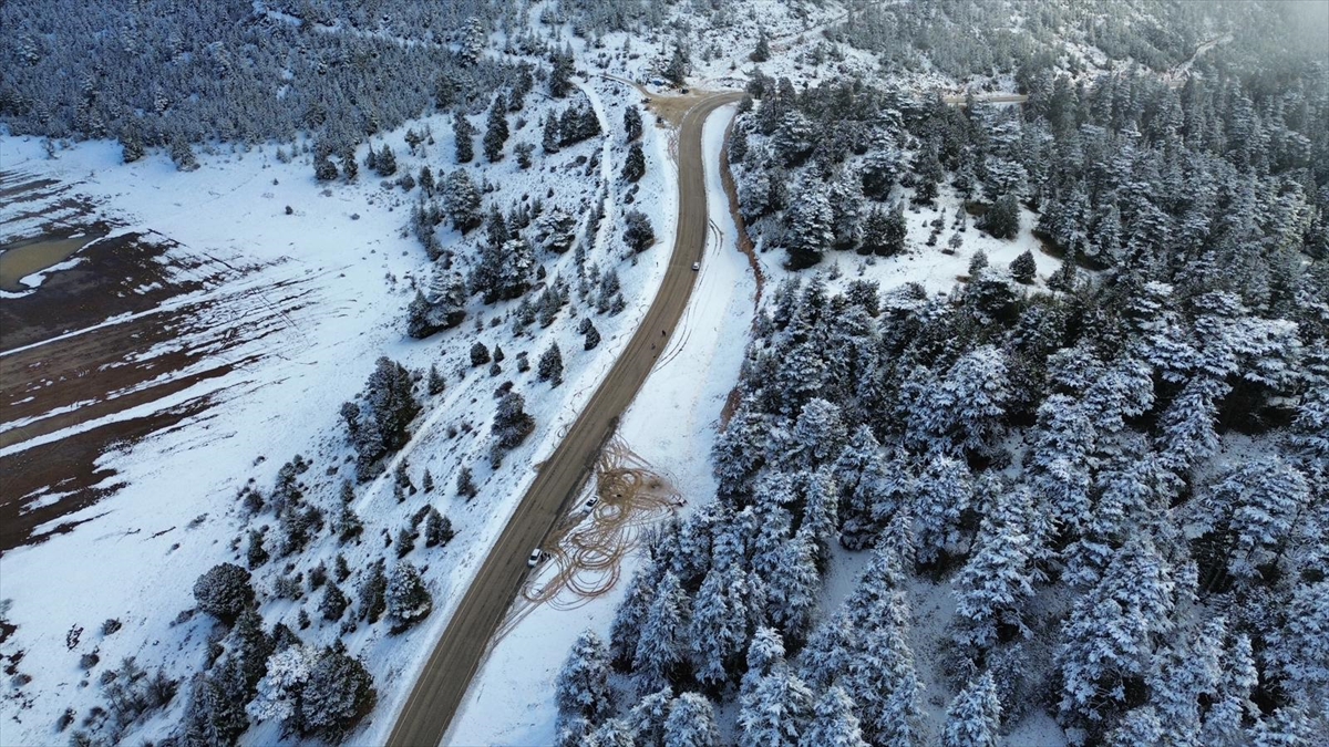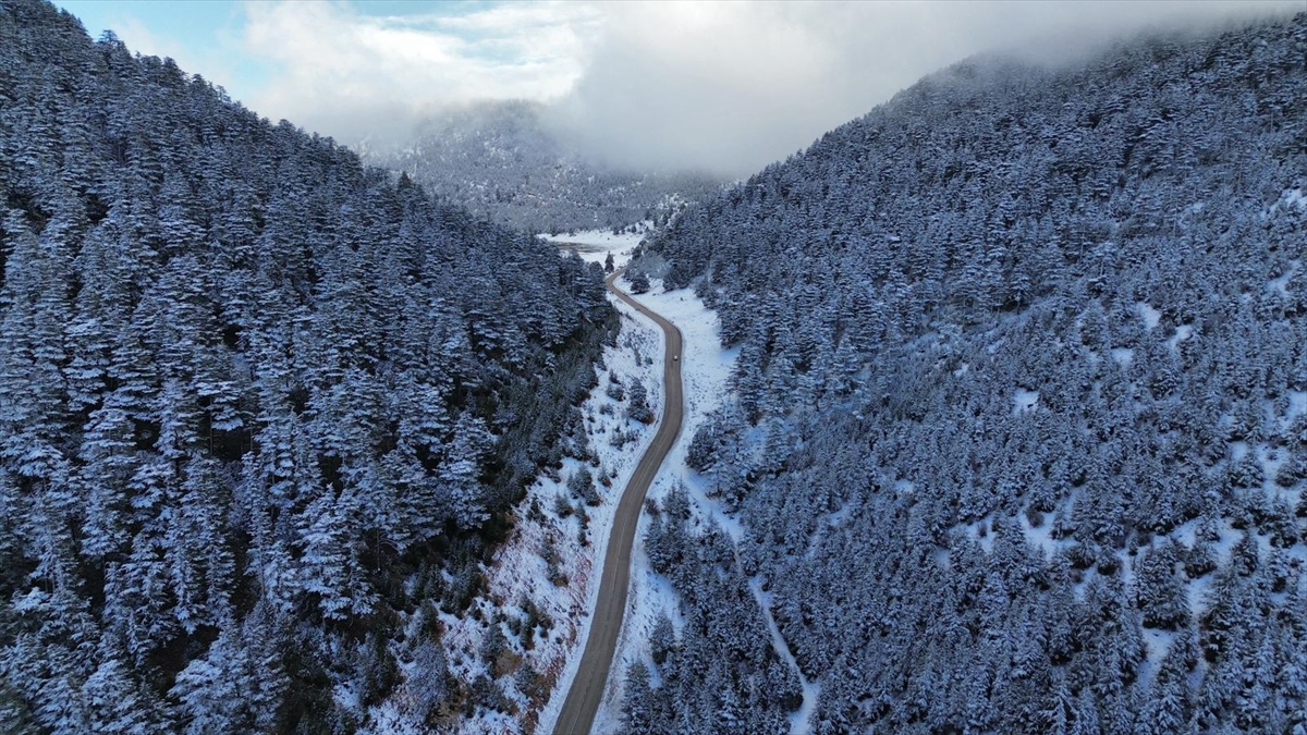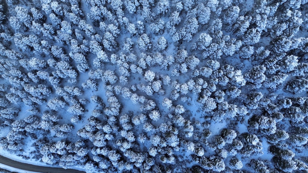 Karla kaplanan ormanlık alan ve kıvrılarak uzanan kara yolu, güzel görüntü oluşturdu.
