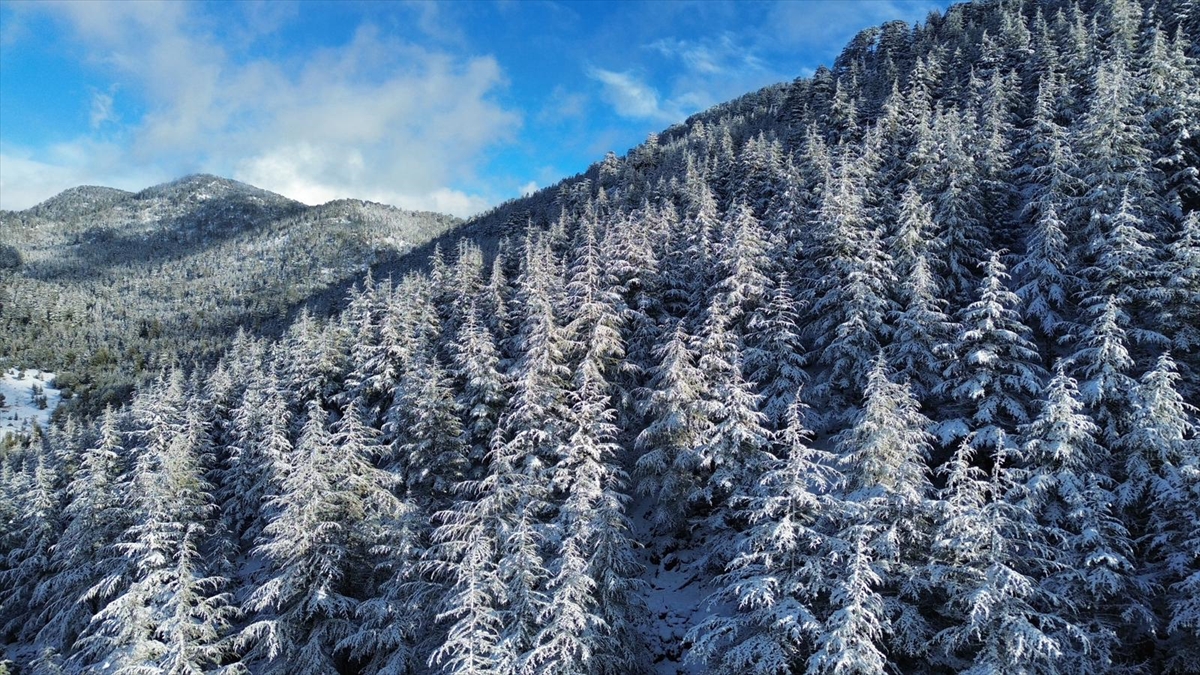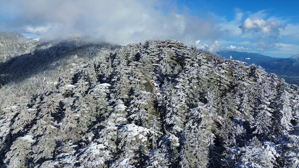 Kent merkezine 65 kilometre uzaklıktaki Gömbe Mahallesi`nin 1560 rakımlı Kuruova Beli mevkisi ve Gömbe Yaylası`nın yüksek kesimlerindeki ormanlık alan beyaza büründü.