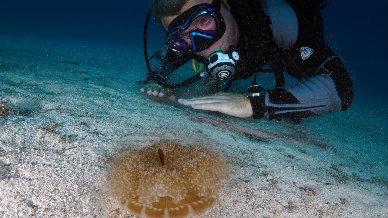 Türkiye'de ilk kez Sarsala Koyu'nda Tahsin Ceylan'ın görüntülediği, İndo-Pasifik kökenli yakıcı hücrelere sahip Cassiopea andromeda türü denizanasının, Kaş kıyılarında yoğun istilası belirlendi.