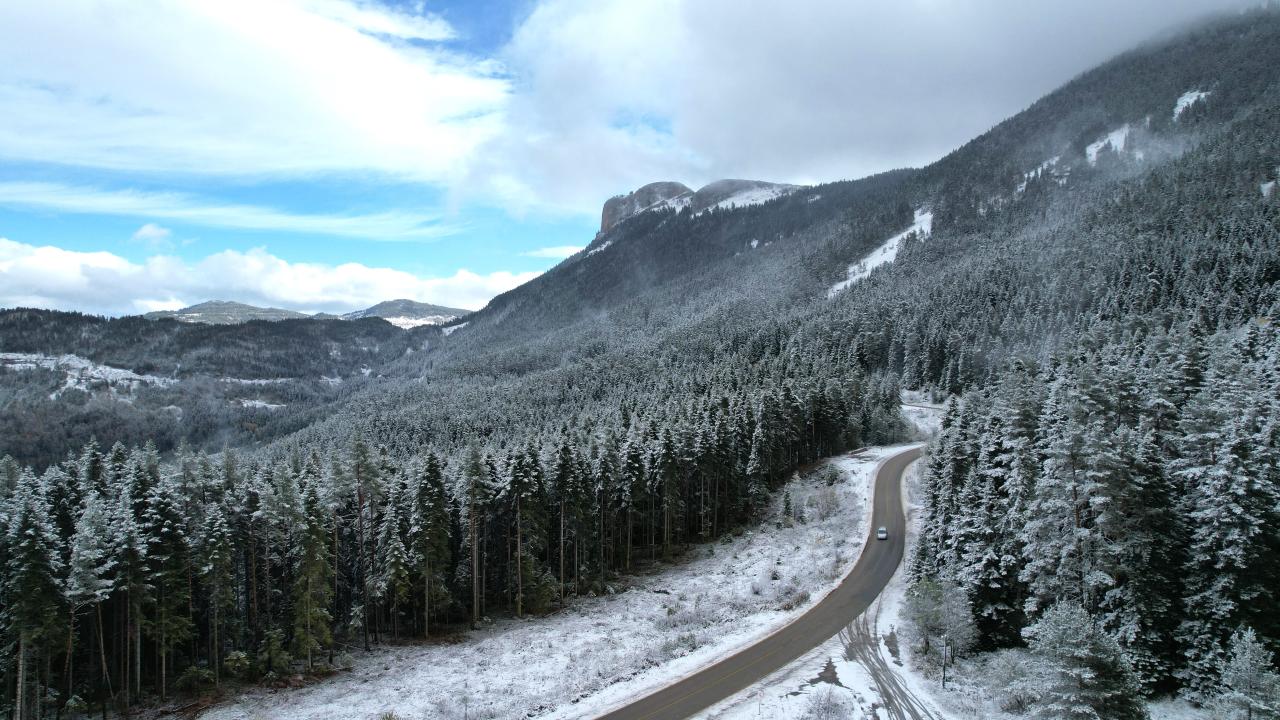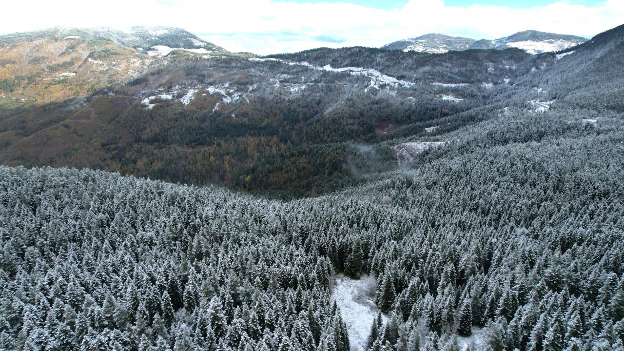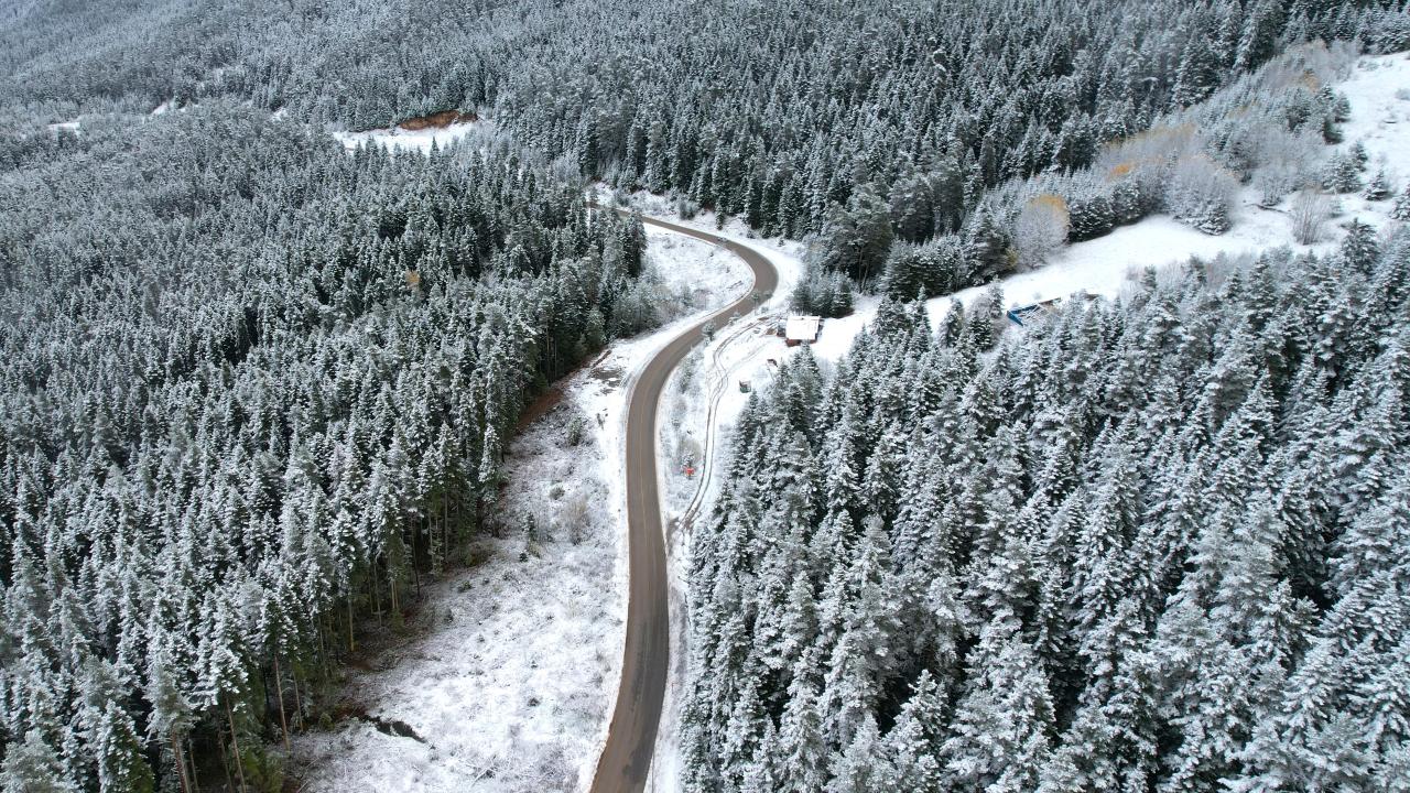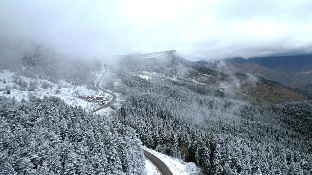 Odayboğazı ve Isırganlık mevkilerindeki ormanlık alanlarda sonbaharın renk tonları güzel görüntüler sunarken bin 450 rakımlı Yaralıgöz Geçidi`nde ise ormanlar beyaz örtüyle buluştu.
