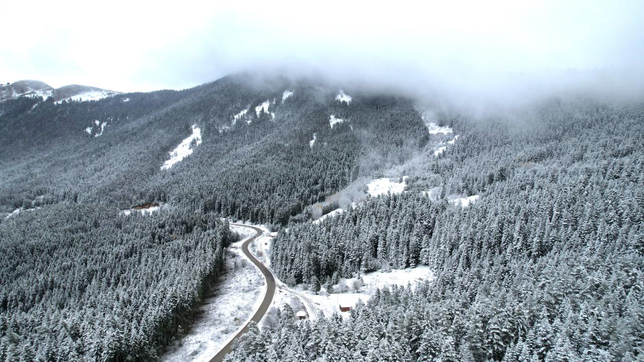 Kentin Karadeniz sahilindeki ilçeleri Abana, Bozkurt ve Çatalzeytin`i il merkezine bağlayan kara yolunun yüksek rakımlı bölgelerine mevsimin ilk karı düştü.