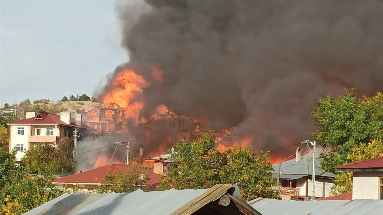 Yangından ilk belirlemelere göre 10 ev etkilendi. Evlerde büyük hasara neden olan yangını söndürme çalışmaları sürüyor.