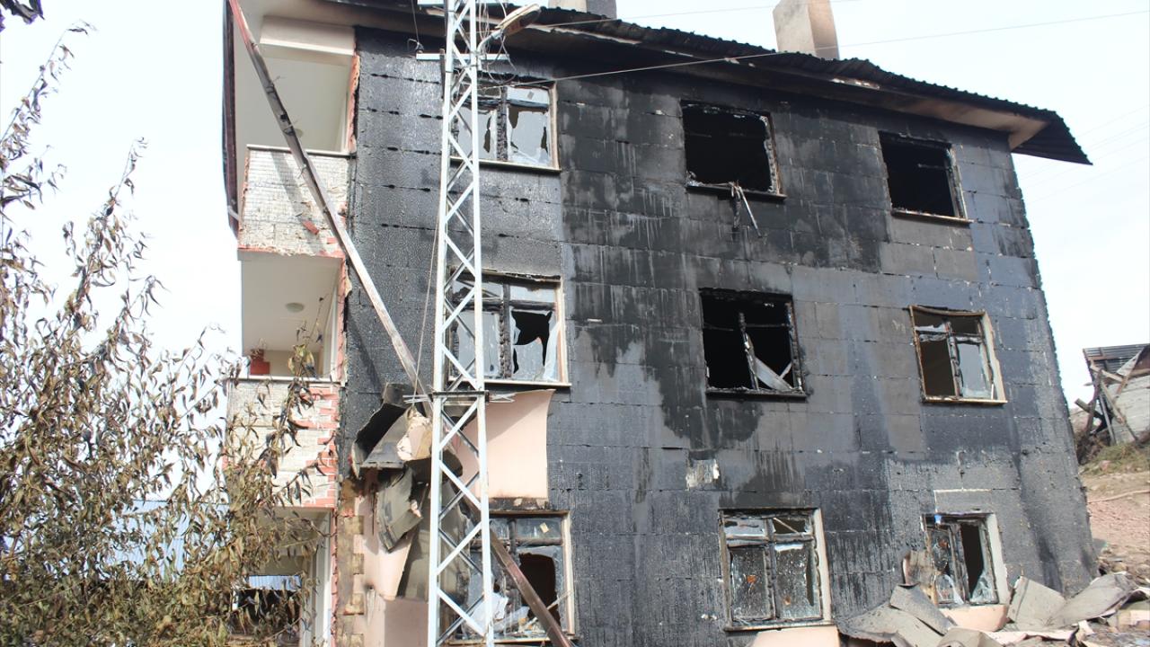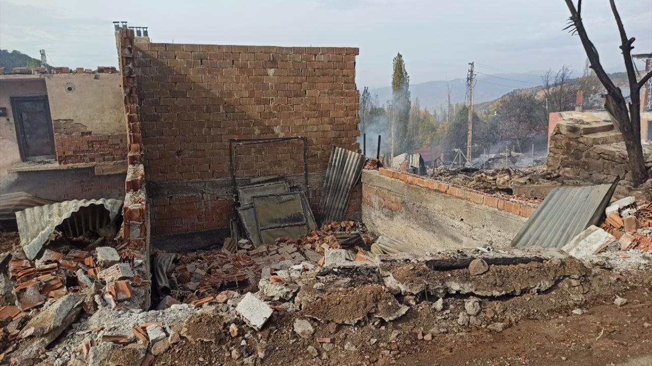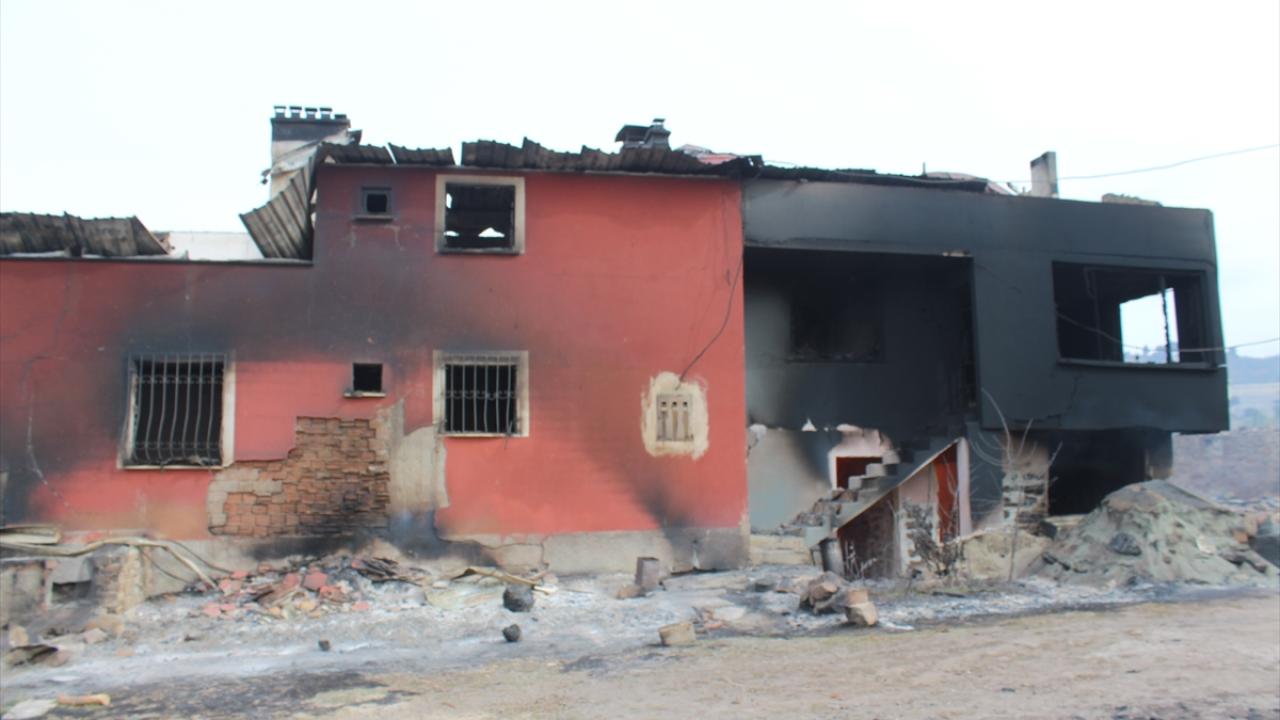 Evlerin yanı sıra büyük ve küçükbaş hayvanlar ile tarım aletlerinin de zarar gördüğü yangını AA ekibi dronla görüntüledi.