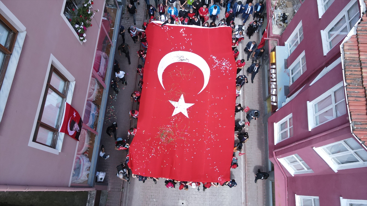 Ellerinde Türk bayraklarıyla Türk Ocakları önünden başlayan yürüyüşe katılanlara şehir merkezinden geçerken vatandaşlar tarafından konfeti ve çiçekler atıldı.