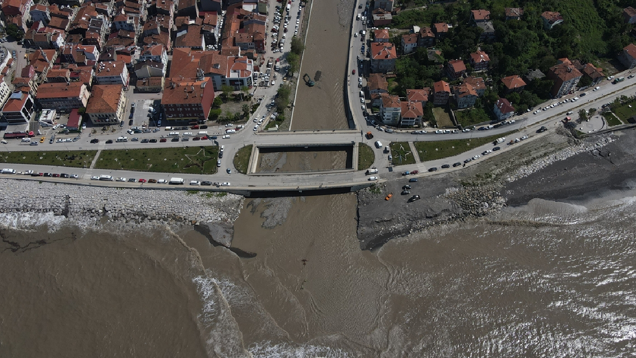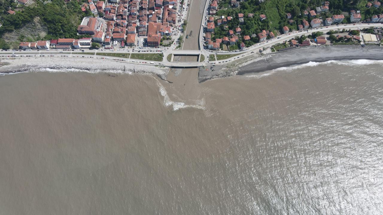Kastamonu'nun İnebolu ilçesinde dünkü selin ardından denizin rengi, çamurlu suyun etkisiyle kahverengiye döndü.
